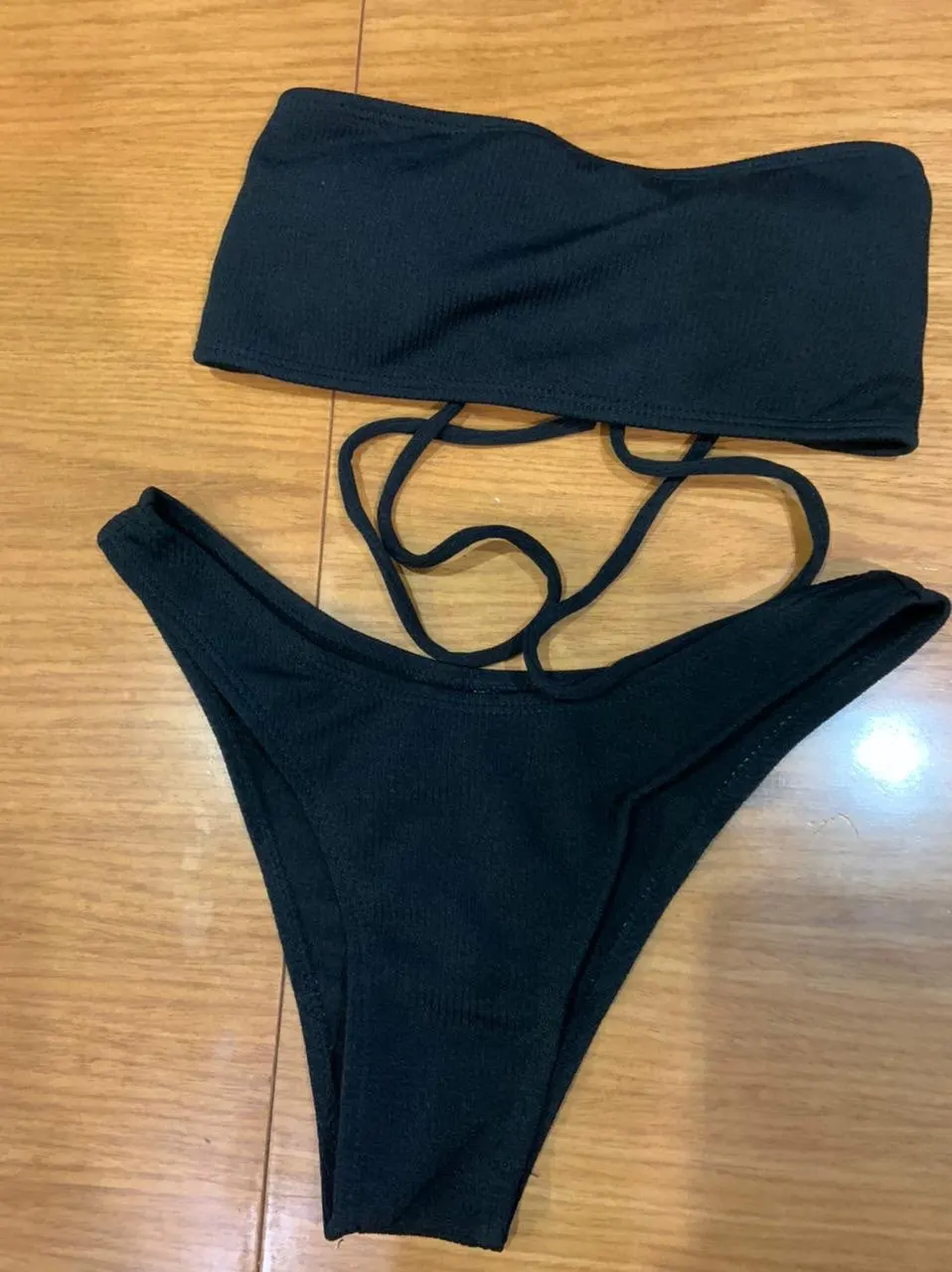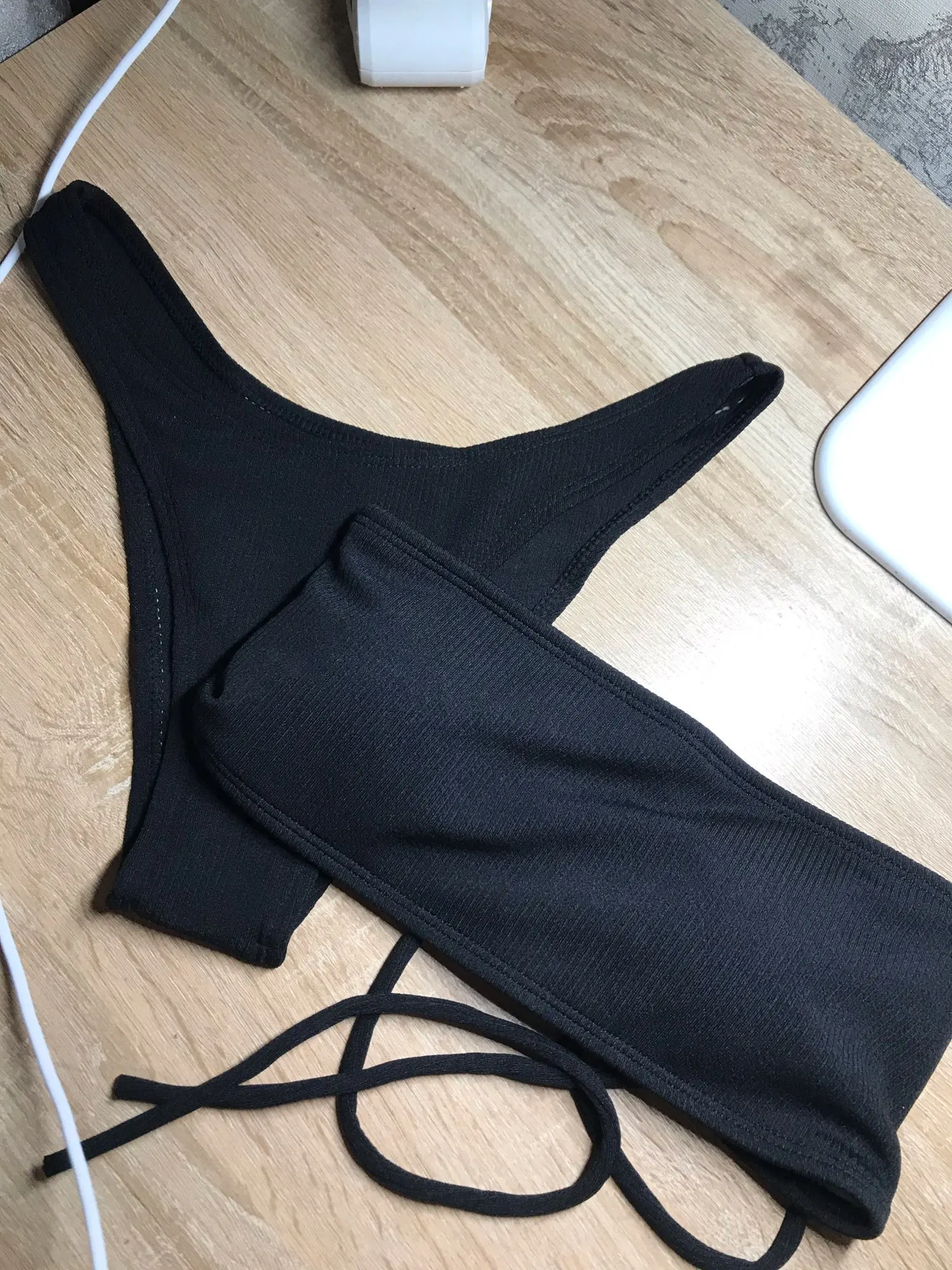2019 однотонное бикини бразильский купальник женский комплект бикини сексуальный купальник с открытыми плечами женский купальник бикини
