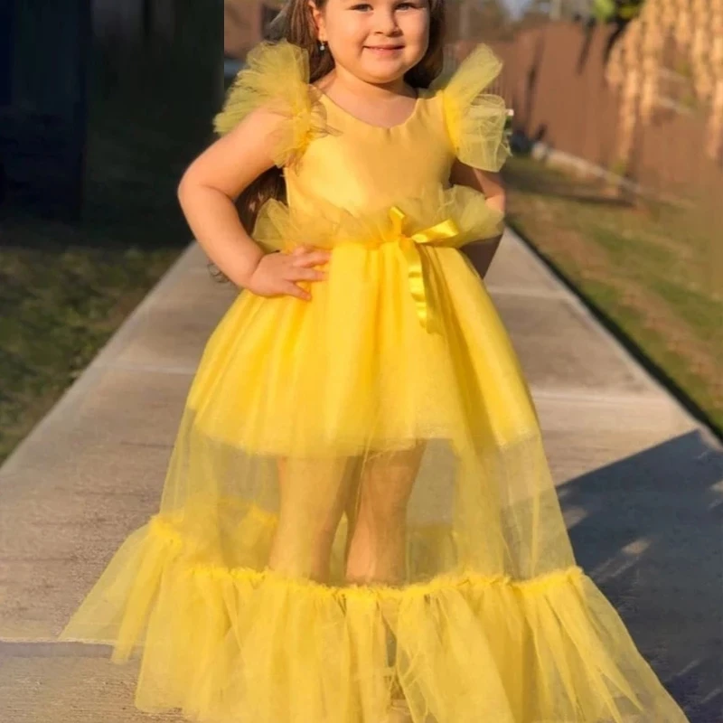 Детское бальное платье Hi-Lo, желтое Тюлевое платье с цветами, для ...
