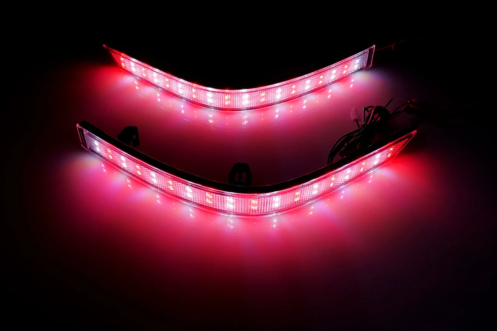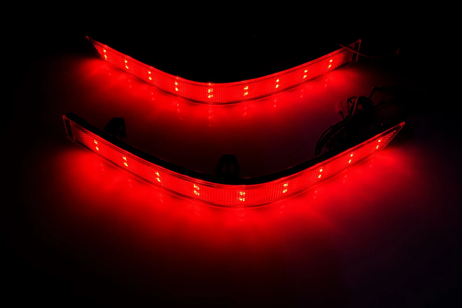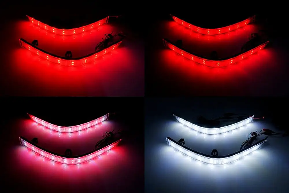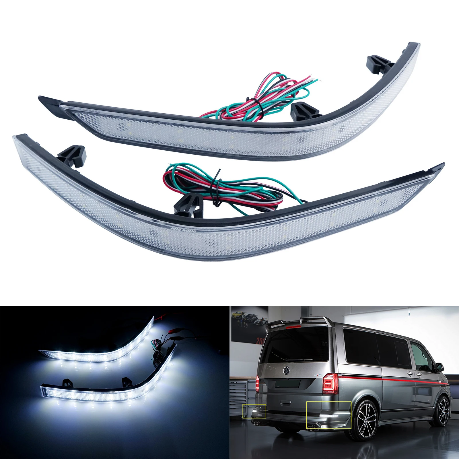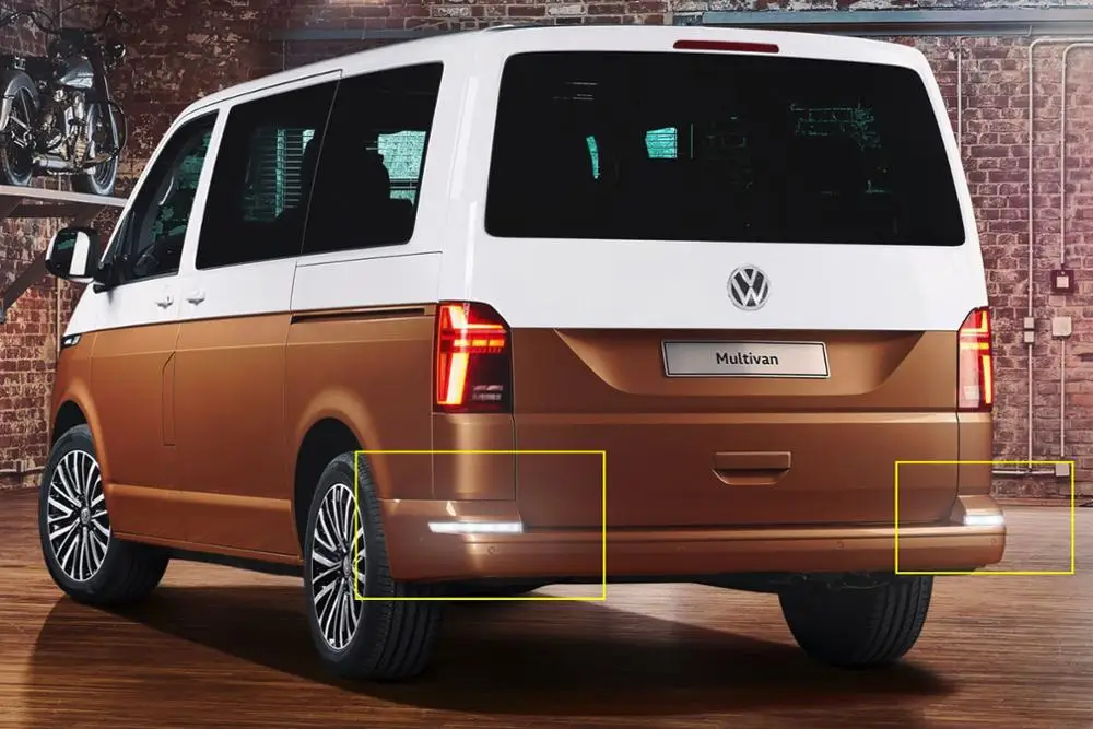 2 шт. (пара) Светодиодный отражатель бампера, задний стоп-светильник для VW T6 TransporterЯркий красный цвет темп. Светильник и ксеноновый белый 6000KС прозрачными линзамиНапряжение: 12 В постоянного токаС 36 шт. 3528/1210 SMD светодиодов каждая лампа полностью; 18 светодиодов в белом и 18 светодиодов в красном светильникОн может заменить запасной задний бампер Красный отражатель и функции, как дополнительный светодиодный стоп-светильник, задний противотуманный светильник, сигнальный светильник поворота в OEM fitmentПремиум послепродажный модифицированный товар