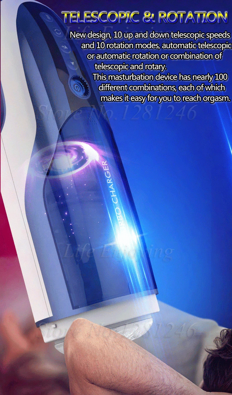 1. Полностью автоматический телескопический, режим вращения, 10 режимов сексуального звука, мягкий материал TPE, сильный двойной мотор; 2. Полностью автоматический телескопическая ротация 460 раз/мин, телескопический поворотный синхронный режим, при расположении стороны, 3. Индивидуальный автоматический телескопический режим 280 раз/минуту, Раздельный автоматический режим вращения 330 раз/минуту, 10 наборов частоты телескопическая ротация; 4. Положительный и отрицательный 2 вида поворотного режима, 3 + 7 видов вращения, формирование более 10 видов режимов стимуляции; 5. Двухмоторное многослойное управление, телескопический ход 45 мм, виртуальный шкурный канал 4D, десятки гранулированных мягких и прозрачных эластичных TPE; 6. Функция одной кнопки burst, прозрачное окно 360 °, Функция паузы одной кнопкой, подключаемые наушники для защиты конфиденциальности, USB-зарядка