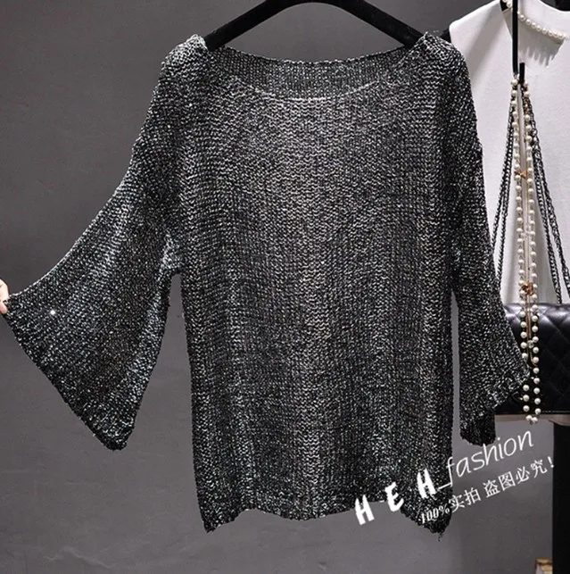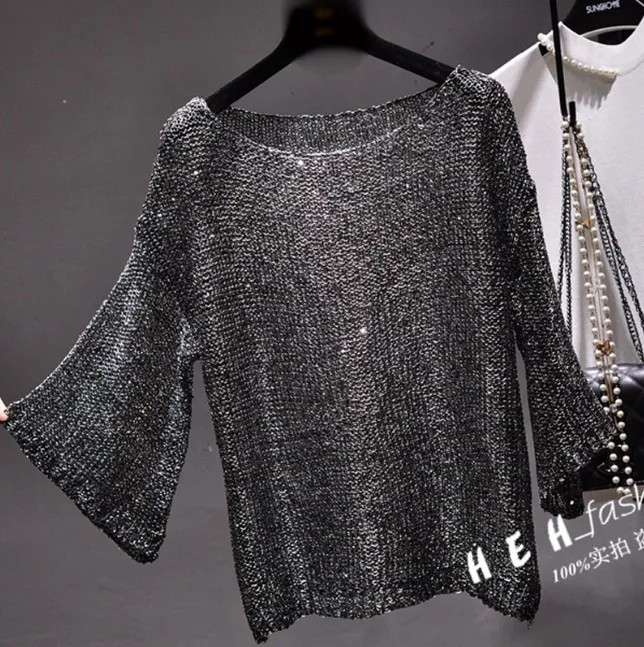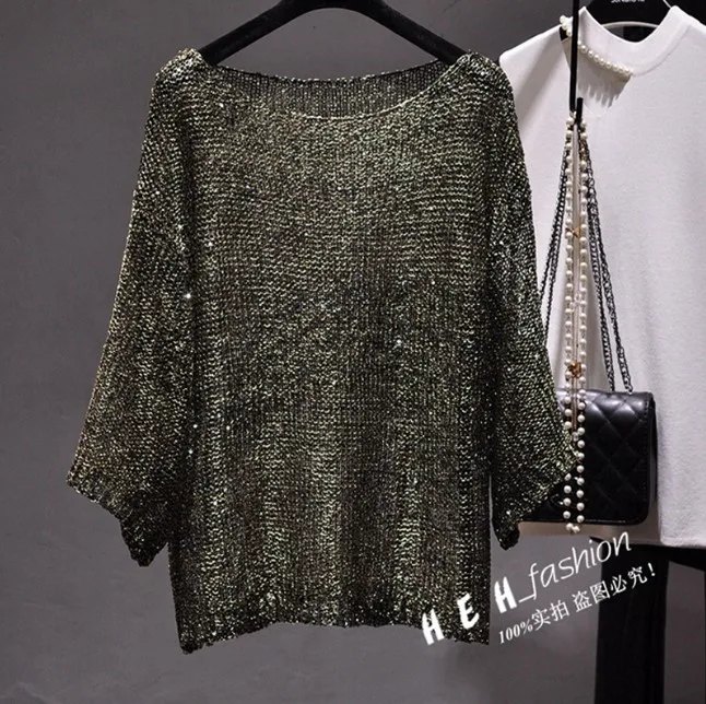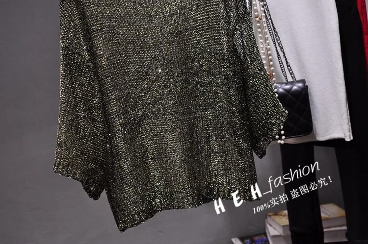 Женский Блестящий пуловер Qooth с люрексом и длинным рукавом, базовая золотистая рубашка с круглым вырезом, вязаные топы с блестками, джемпер QH2174