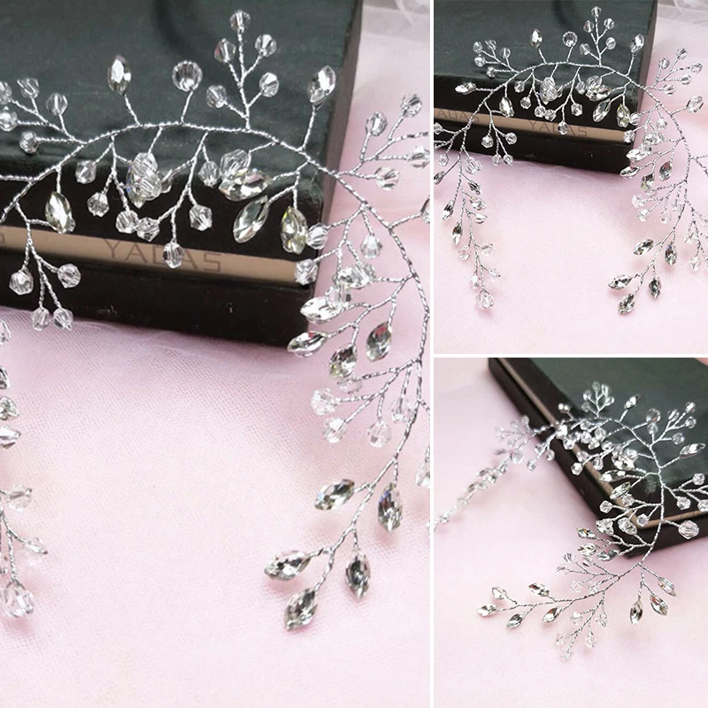 Повязка на голову для невесты, белая, с кристаллами, Свадебная лента для волос, свадебные аксессуары для волос, украшение в виде диадемы