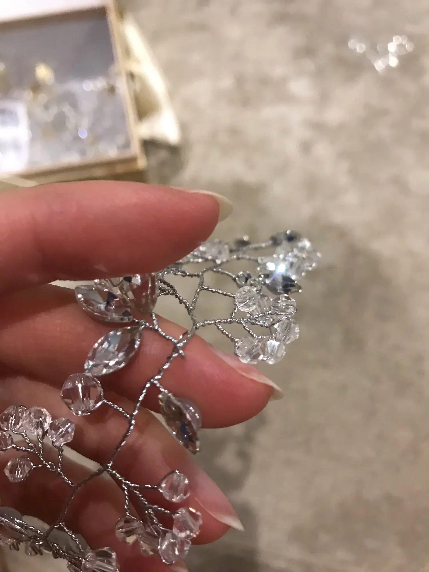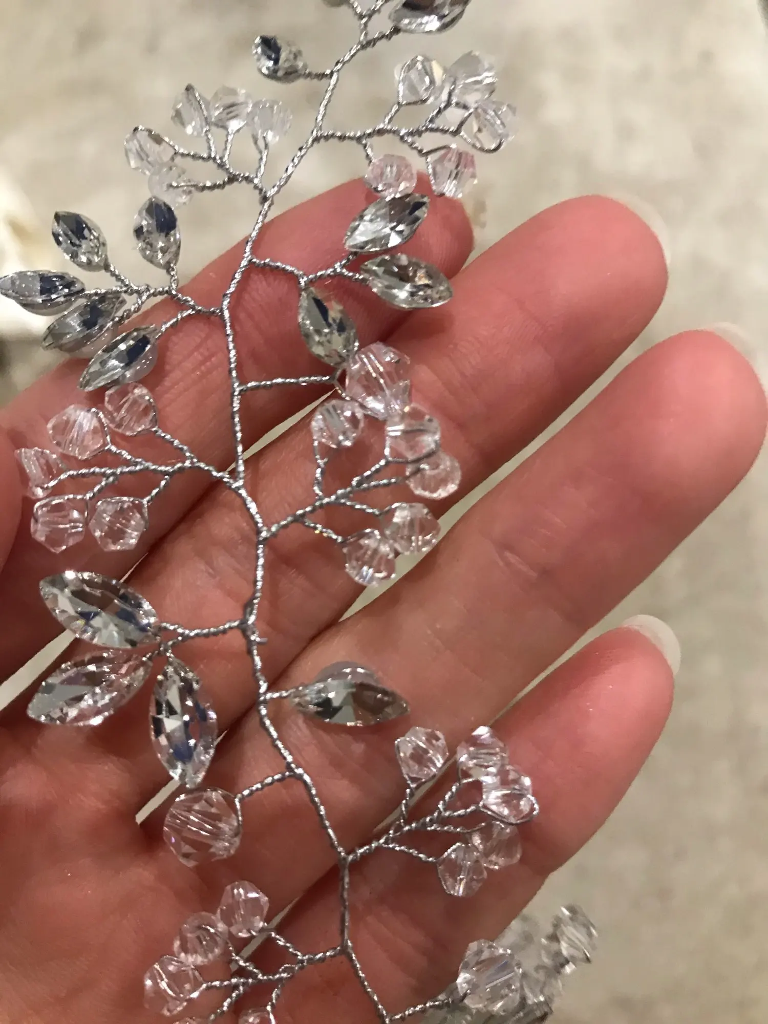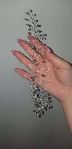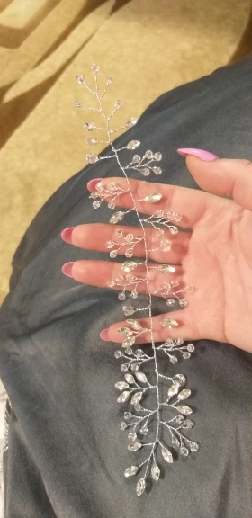 Очень красивое нежное украшение!!!Выглядит дорого, заказ продавец выслал сразу же, думала будет долго ехать, шло меньше месяца, покупкой довольна закажу ещё, прикрепить можно просто на невидимки очень красиво смотрится, брала на помолвку. отлично подойдёт под событие!!!!