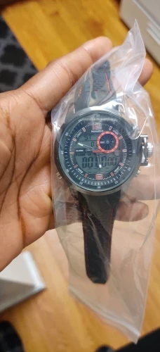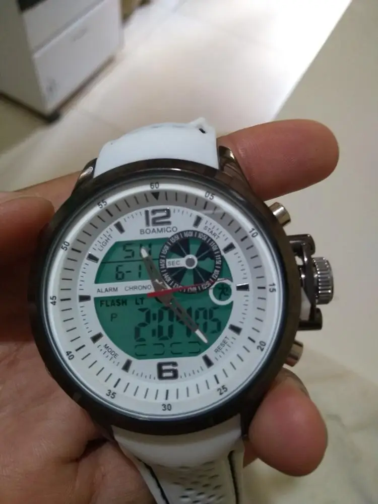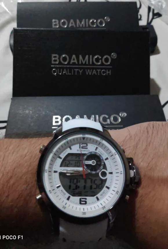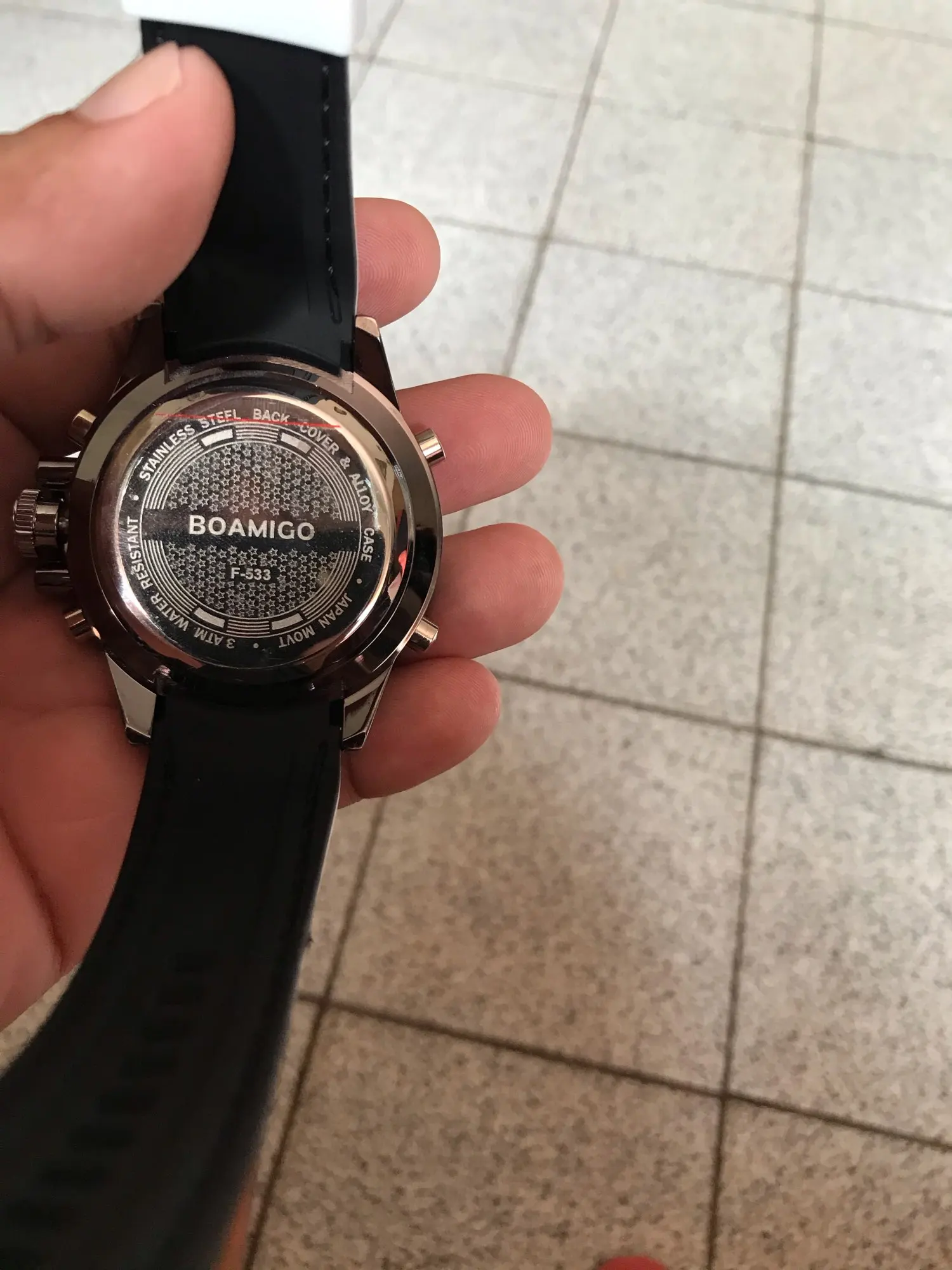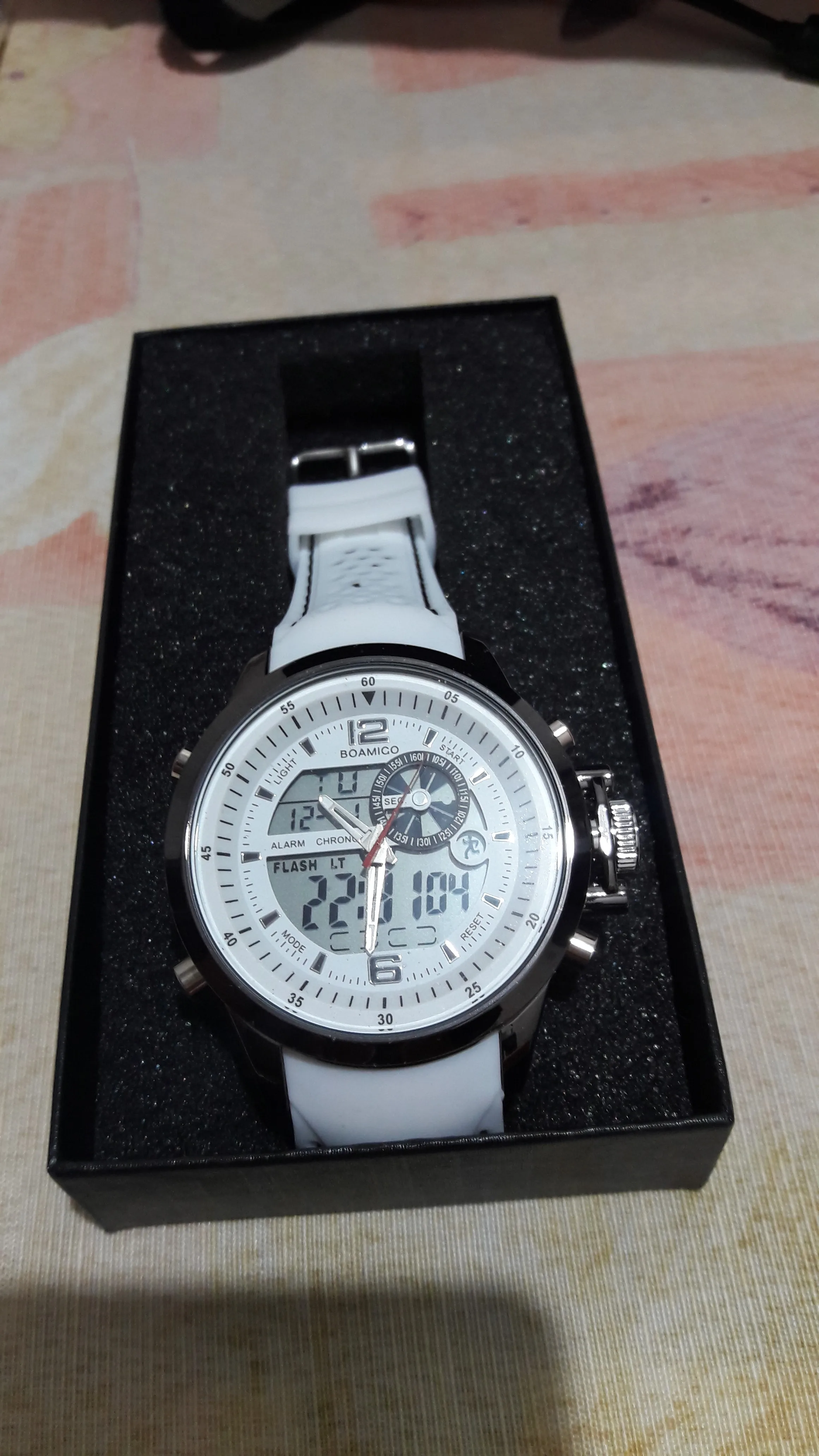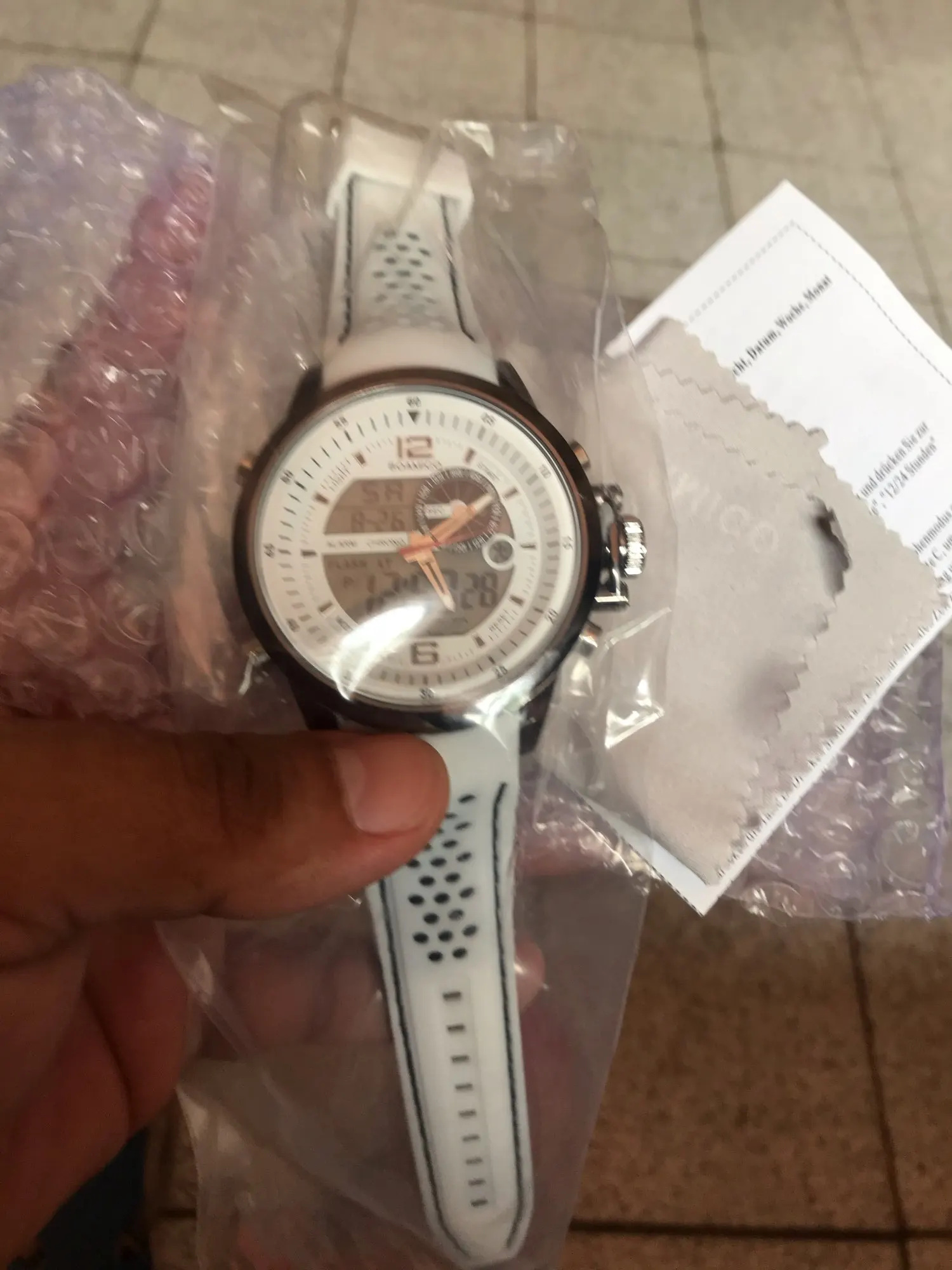 На фото было обнаружено, что часы были простыми; Прибыл в течение 26 календарных дней с момента оплаты, т. Е. Очень быстро, так почему после оплаты продукта должен быть отделен так было очень быстро 26 дней; И часы отличного качества и более реальные, отличная конструкция, тяжелые, Толстый!