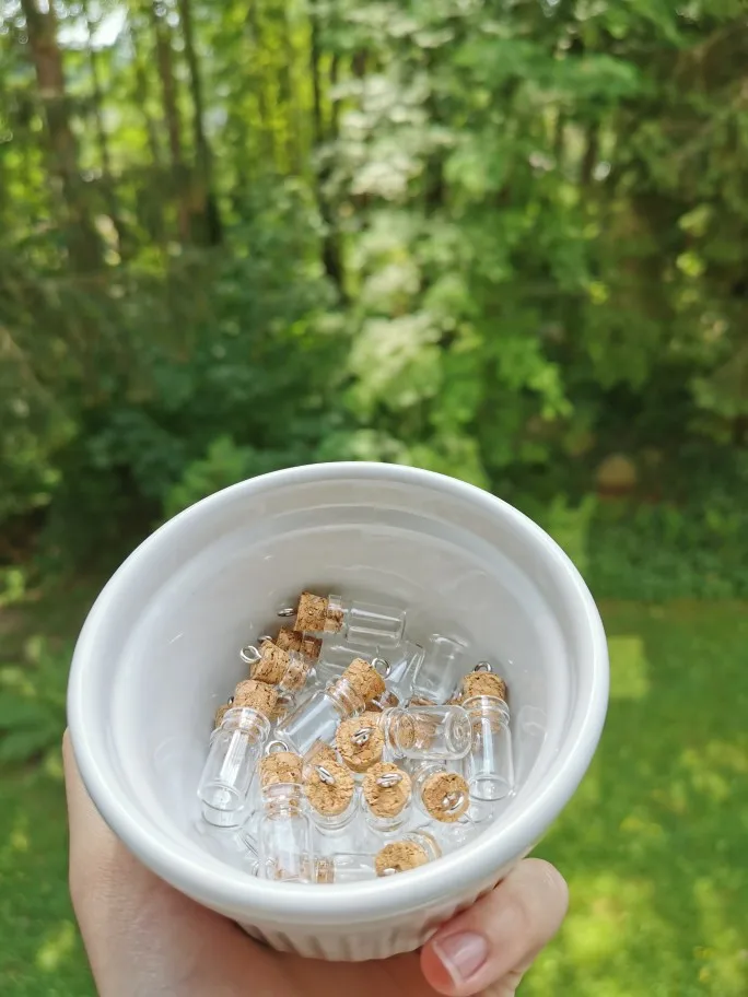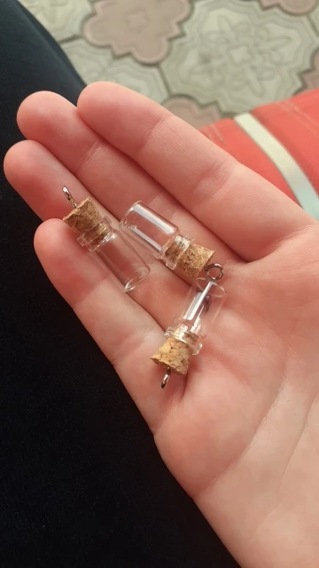 сами бутылочки хорошие, заказывала что бы носить как кулон. но как только туда попала жидкость крышечка начала рассыпаться на много частей.. ну а так заказом довольна (буду знать не не нужно наливать туда жидкости)