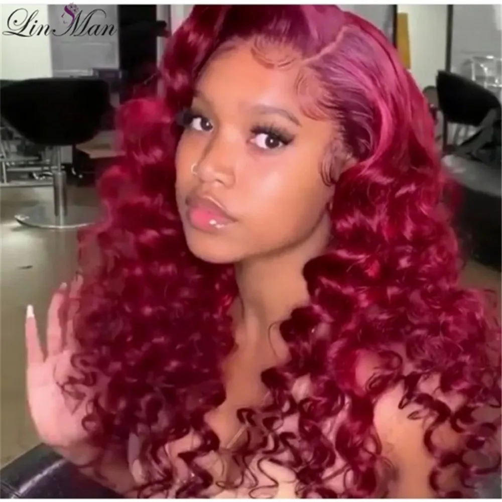 Парики из натуральных человеческих волос 99J, бордовые, 13X4, на се...