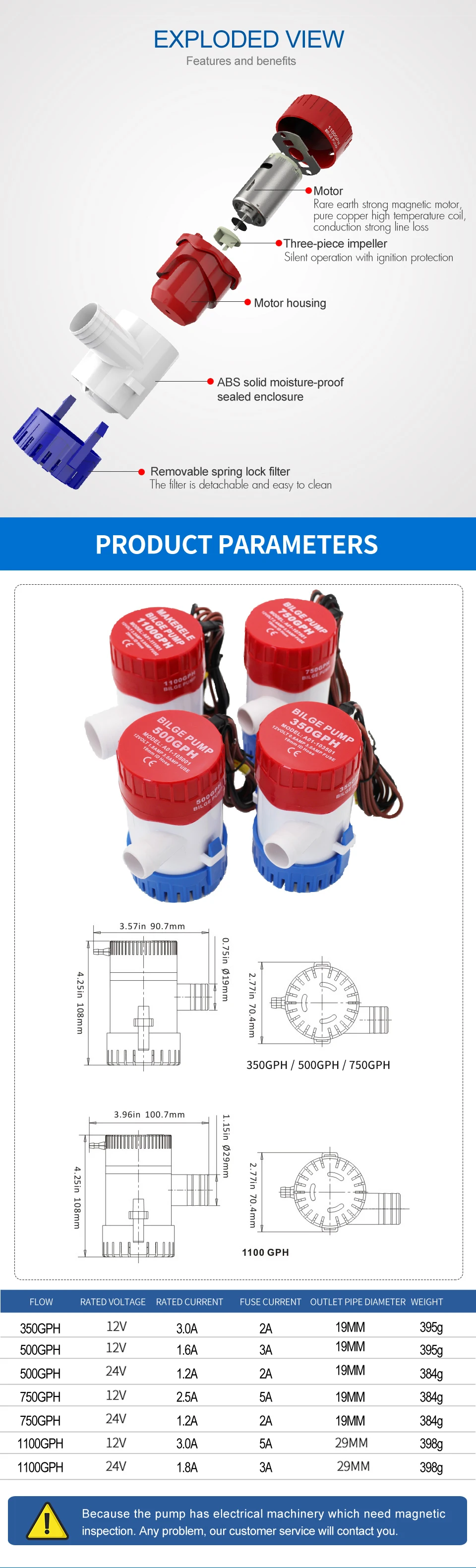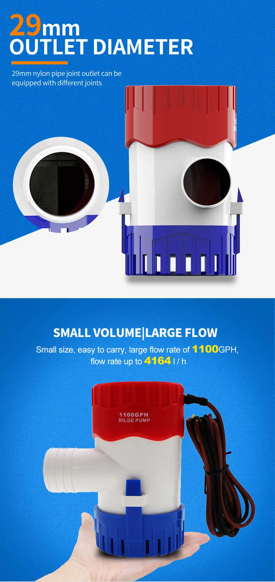 Морской Трюмный насос, 1100gph 750gph 500gph 350gph 12 В 24 В, новый дизайн для дренажа яхт