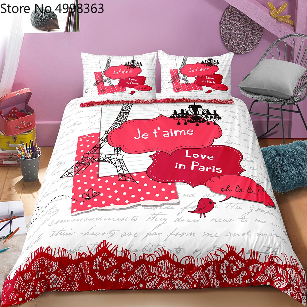 2/3 шт Девушки дома пододеяльник набор один двойной пододеяльник Париж башня Любовь на заказ покрывало Рождественский подарок декор постельные принадлежности наборы