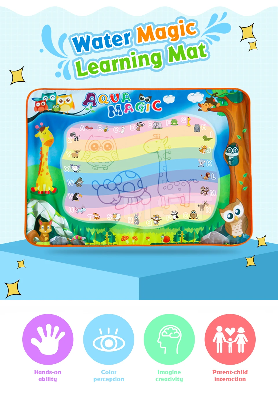 1. Покраска водой, без необходимости очистки.2. Дети держат кисть, чтобы осуществлять координацию рук и глаз. Цвета, изготовленные на холсте, позволяют ребенку распознавать различные цвета.3. Штрих краски исчезнет, так как водяной пар испаряется, и холст вернется к исходному цвету.4. Богатый геймплей, шаблон имеет различные геометрические узоры, цифровые буквы.5. Материал-мягкая ткань, легко складывается и убирается.