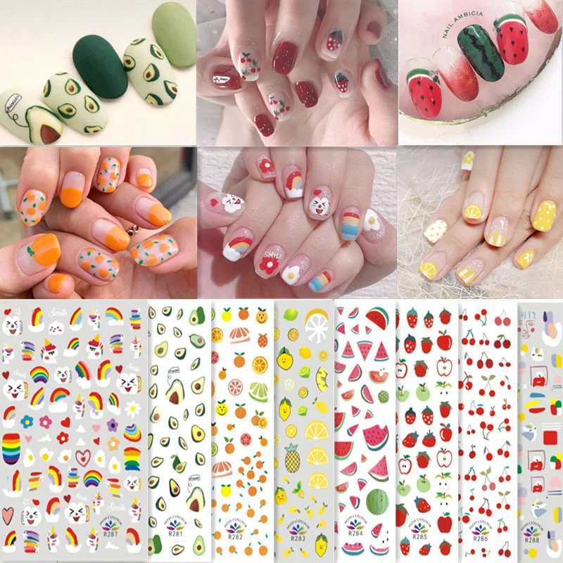 1 лист букв, цветы, Радуга авокадо, арбуз, полные обертки, Переводные Водные Наклейки для ногтевого дизайна, переводки для маникюра, сделай сам