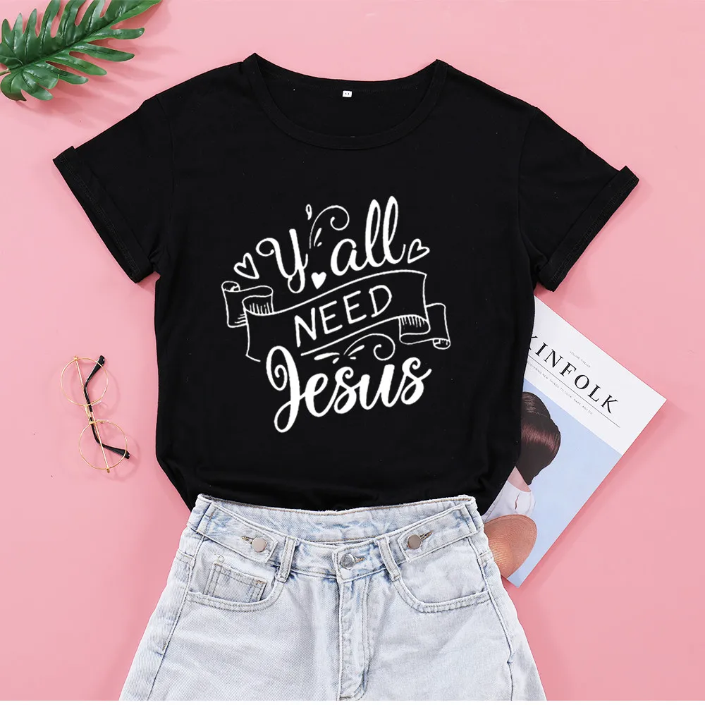 Yall Need Jesus Funny Graphic 90s Эстетическая женская футболка модная женская хлопковая футболка с коротким рукавом и вырезом лодочкой
