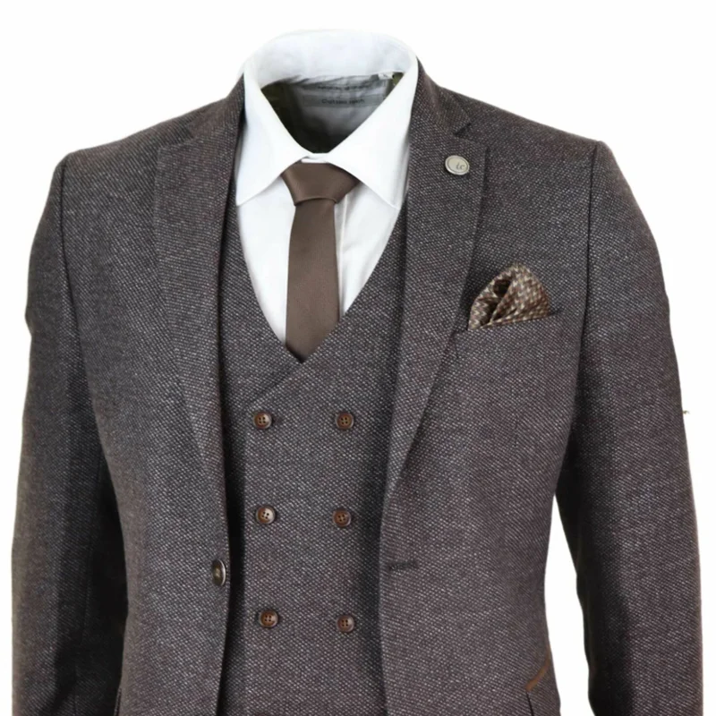 Мужской шерстяной костюм, коричневый костюм из 3 предметов, двубортный жилет с длинным рукавом, твидовый костюм с ослепительными полосками, костюм в стиле 1920-х годов