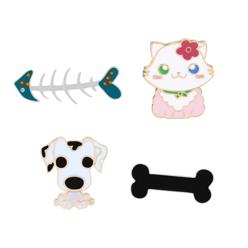 Женская брошь в форме кошки, кошки, собаки, рыбки, кости, с металлическими эмалированными шариками, Подарочная бижутерия