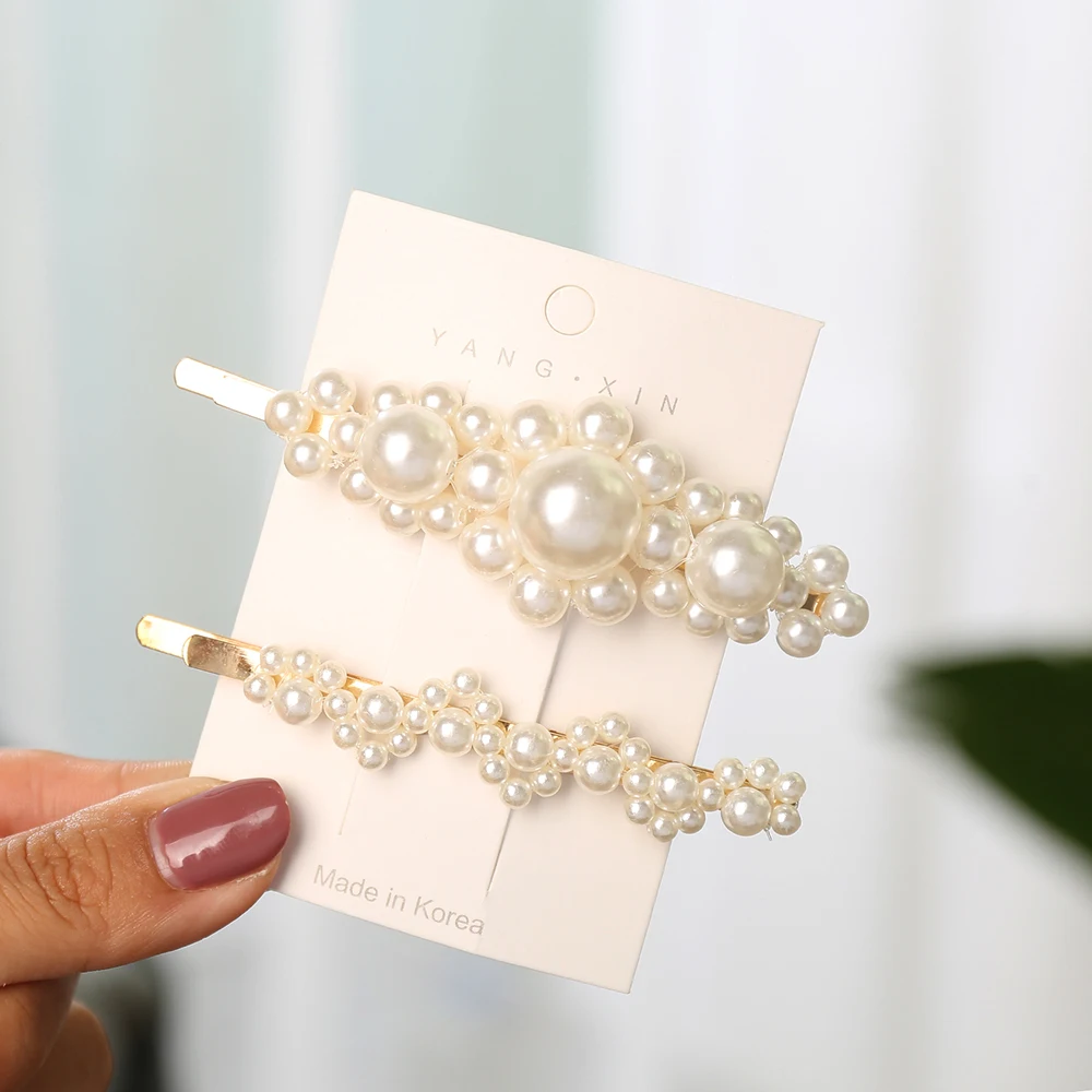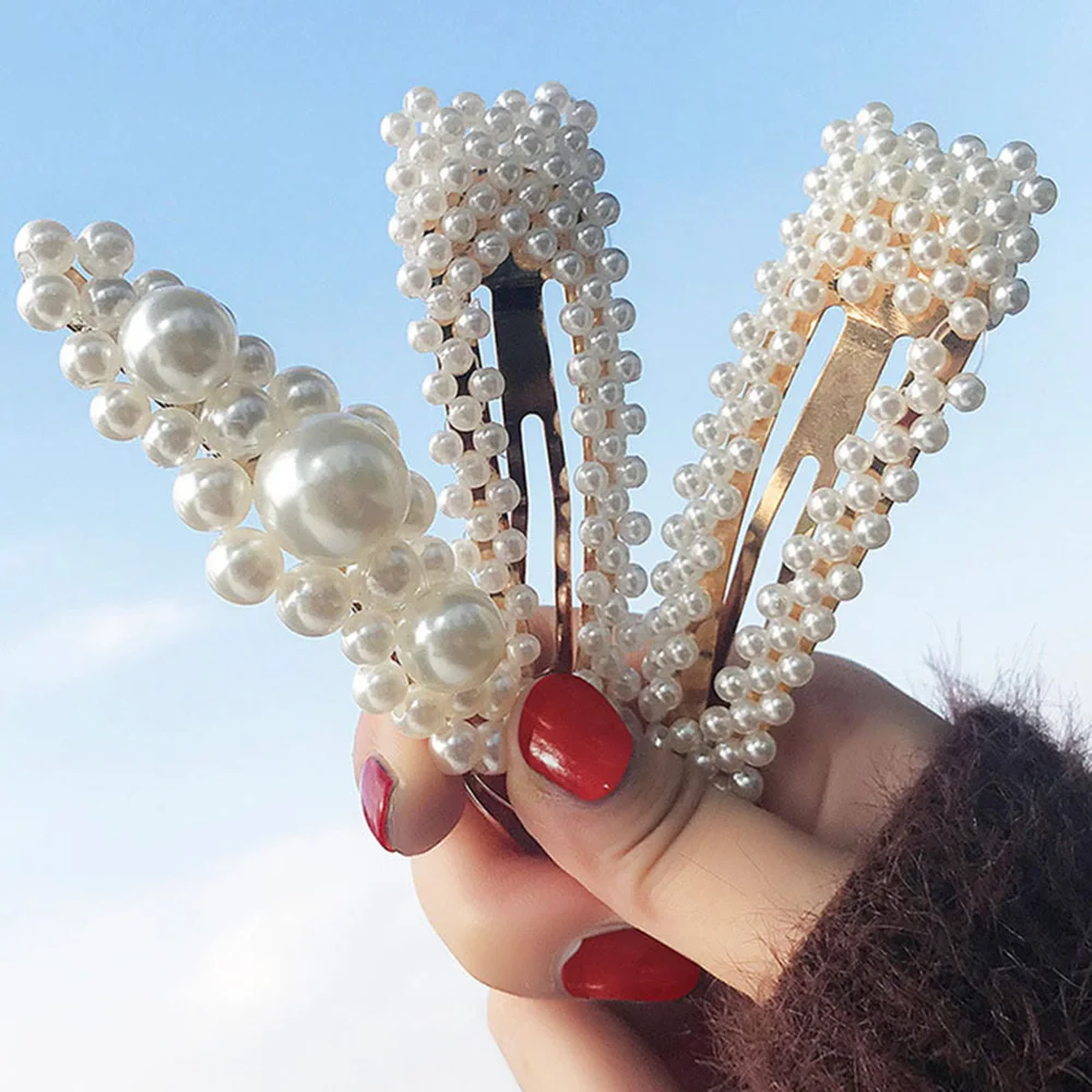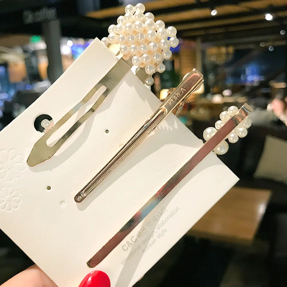 Заколка для волос с искусственным жемчугом женская, модный зажим для волос с жемчугом ручной работы, аксессуар для укладки волос, 3 шт.компл.