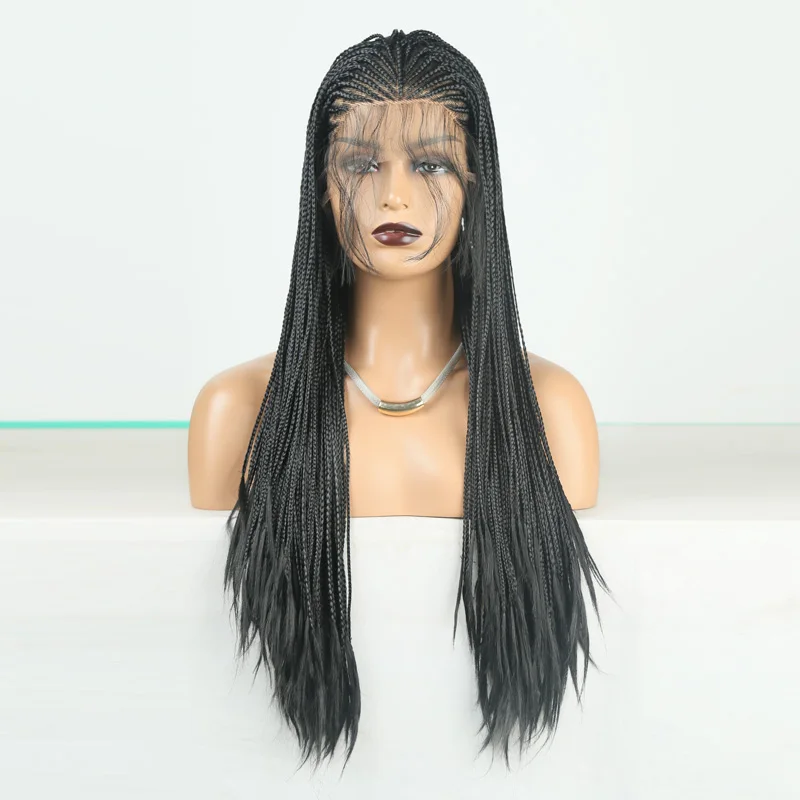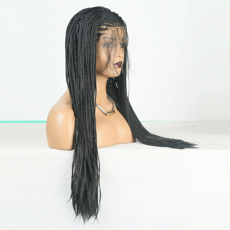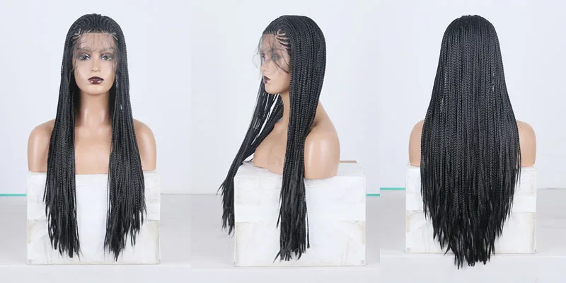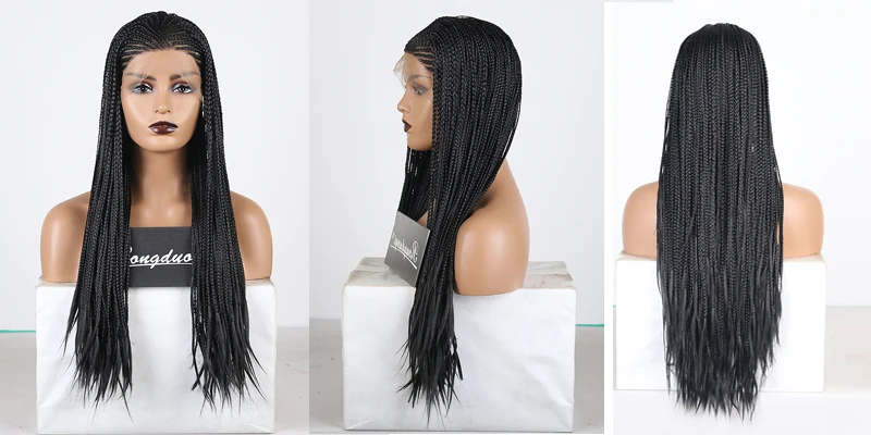 RONGDUOYI длинный плетеный ящик косички парик черные волосы синтетические кружевные передние парики для женщин термостойкие волосы парик шнурка для ежедневного использования