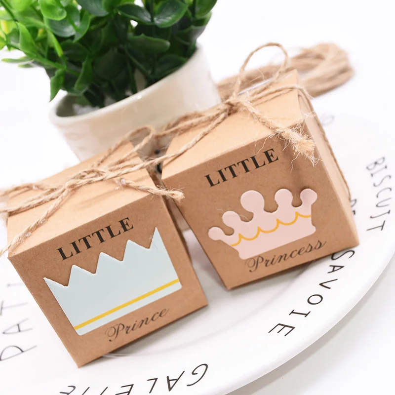 10 шт детский душ DIY коробка конфет маленькая принцесса принц корона Крафт бумажная коробка Дети День рождения Свадебные сувениры Поставки подарочные коробки