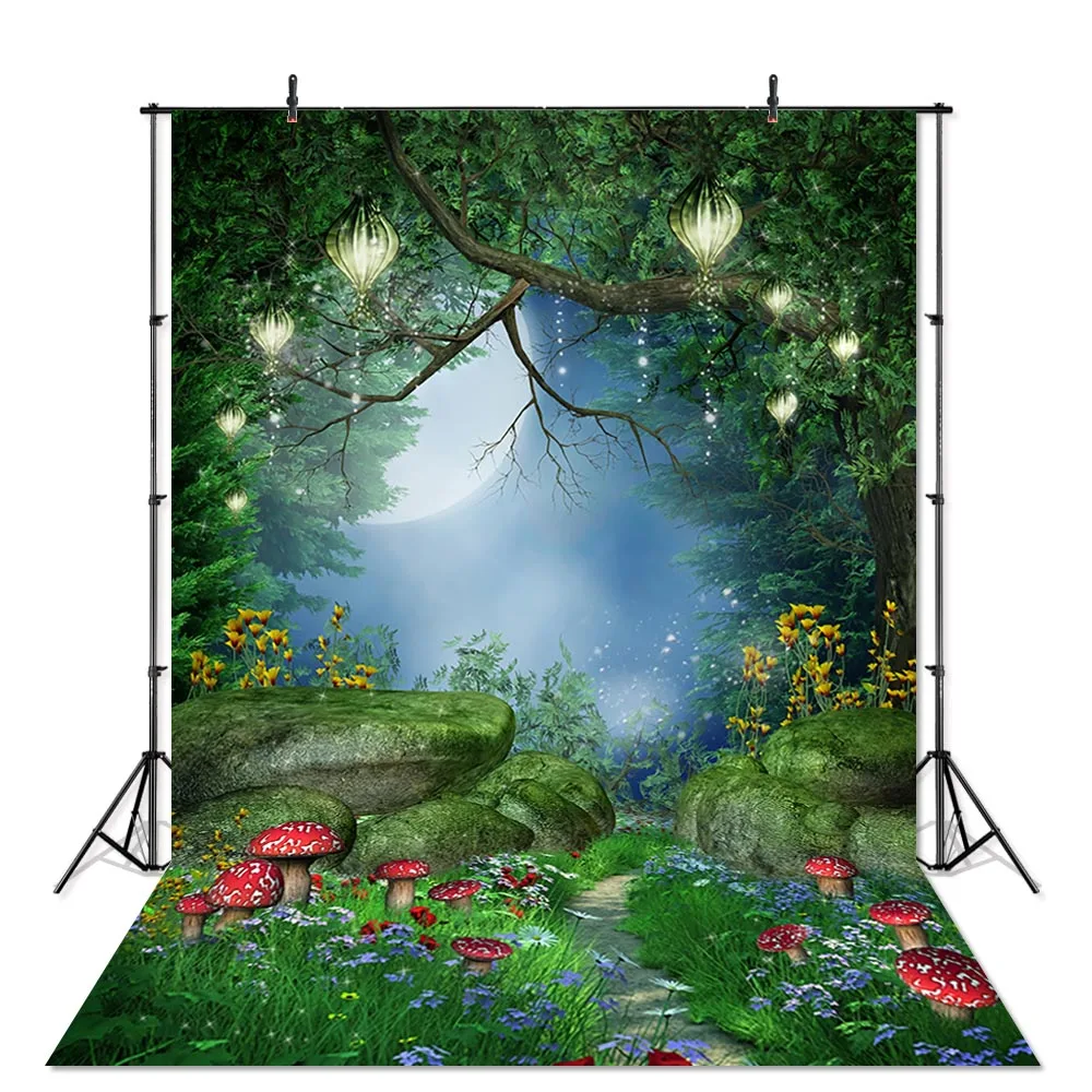 Фон для детской фотосъемки с изображением сказочной страны чудес сказочный лес гриб Весна зеленый фон для фотостудии