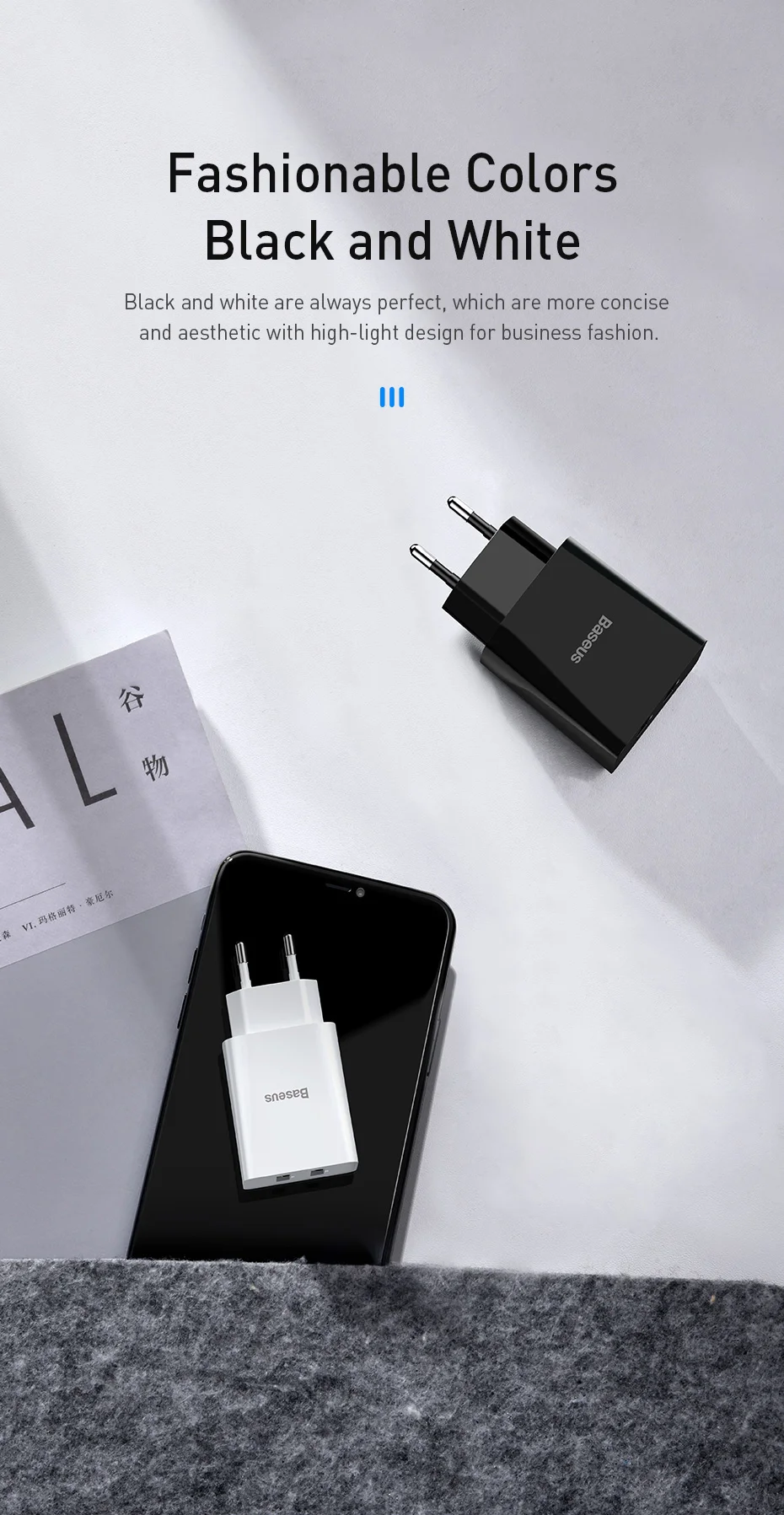 Baseus 5V 2.1A двойное USB зарядное устройство для Samsung Xiaomi Мобильный телефон зарядное устройство быстрый дорожный адаптер для iPhone зарядное устройство EU Plug