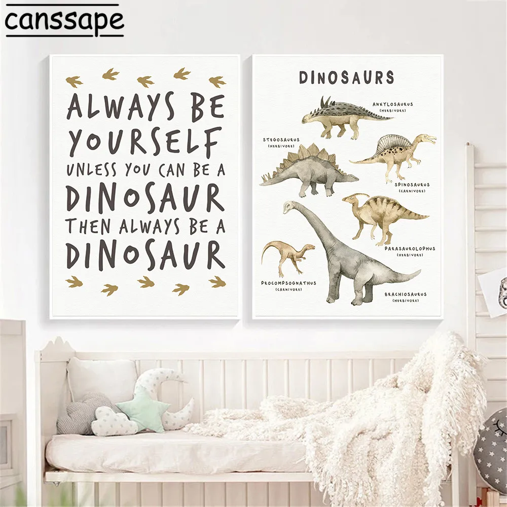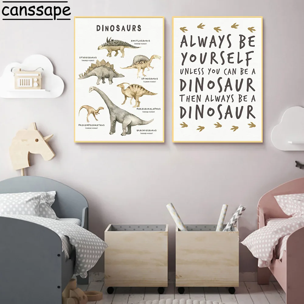 Художественный постер в виде динозавра, вдохновляющие цитаты, Картина на холсте для детской комнаты, настенная печать, настенные картины в скандинавском стиле для украшения детской комнаты