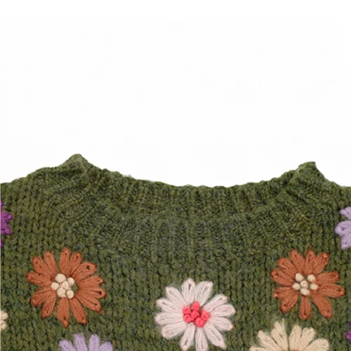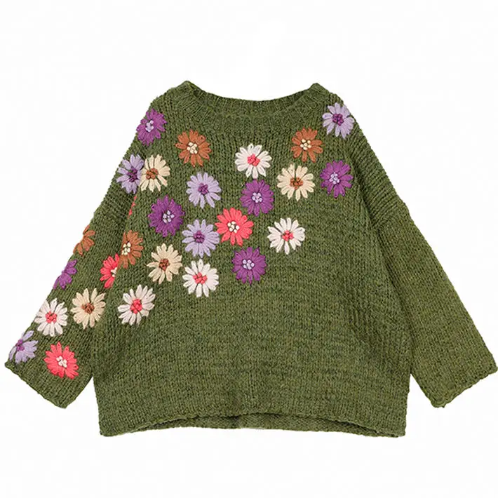 Женский пуловер Neploe с цветочной вышивкой, женский свитер 2022, привлекательный вязаный Топ без бретелек с рукавом летучая мышь, зеленая Повседневная Свободная трикотажная одежда 56658