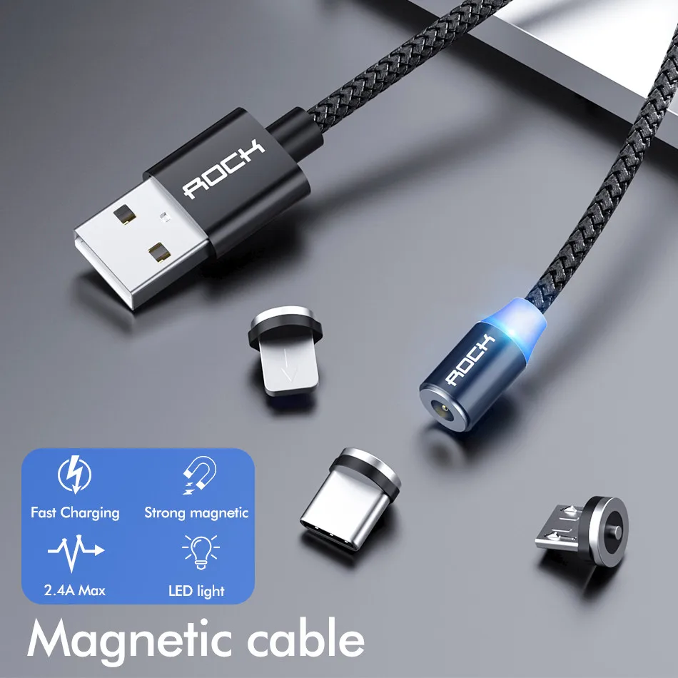 Кабель для зарядки Redgiko магнитный, Type-C Type-A Micro Lightning, 2.4A, нейлон