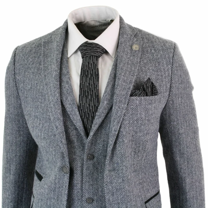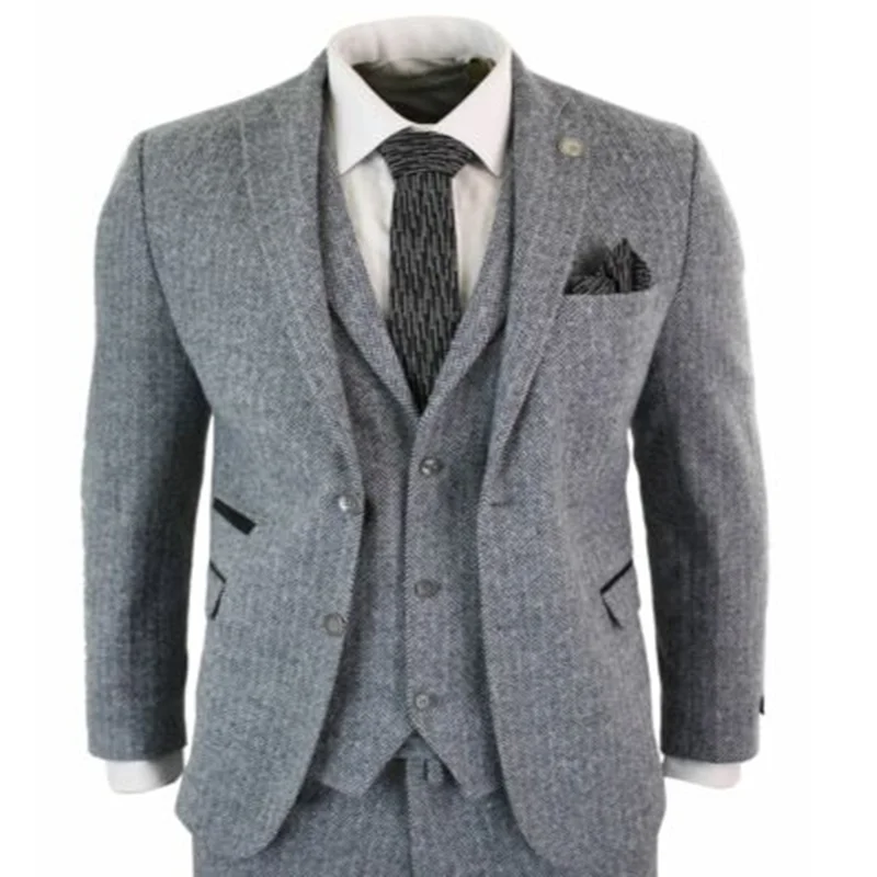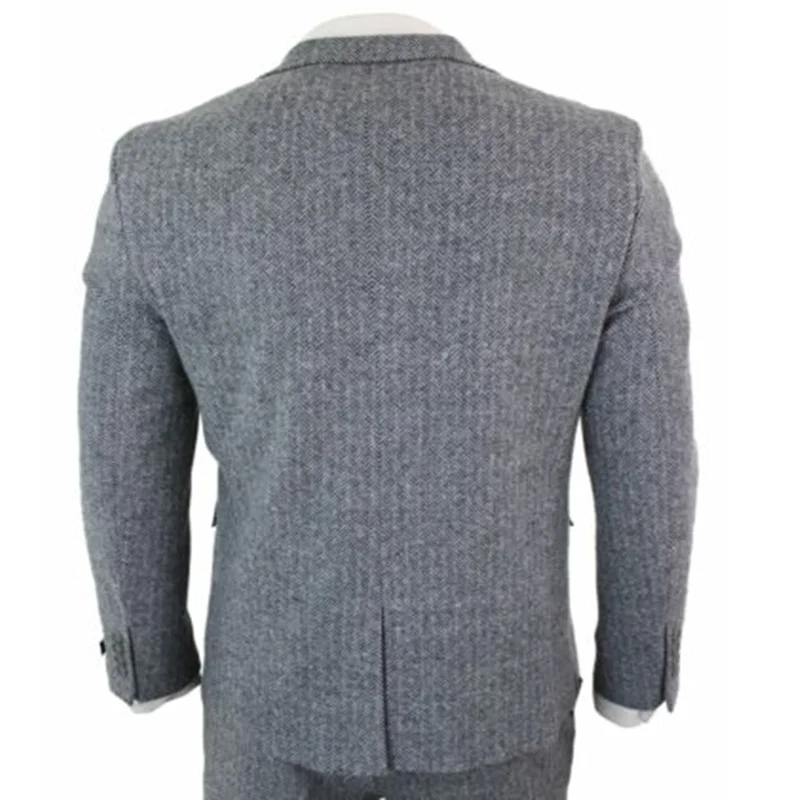 Мужской твидовый костюм светильник-серый шерстяной костюм из 3 предметов, винтажный Ретро-костюм в елочку, мужской костюм-тройка