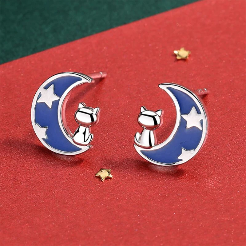 Женские серьги-гвоздики SMJEL, серьги с изображением Луны, звезд, оленей, кошек, ушей, подарок на Новый год