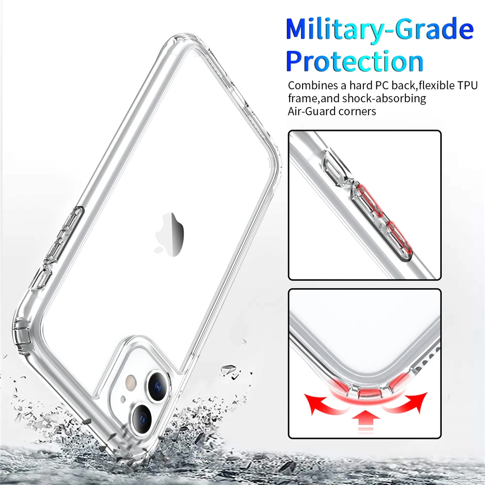 Прозрачный усиленный чехол для iPhone 13 12 11 mini XR 7 8 Plus, жесткий хрустальный защитный чехол-бампер для iPhone 13 12 11 Pro Xs Max