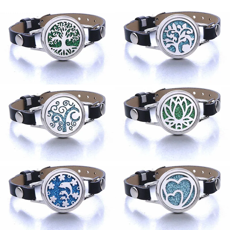 Ювелирные изделия с ароматерапией Древо жизни, диффузор эфирного масла, медальон, кожаный браслет, магнитный браслет из нержавеющей стали с ароматом духов