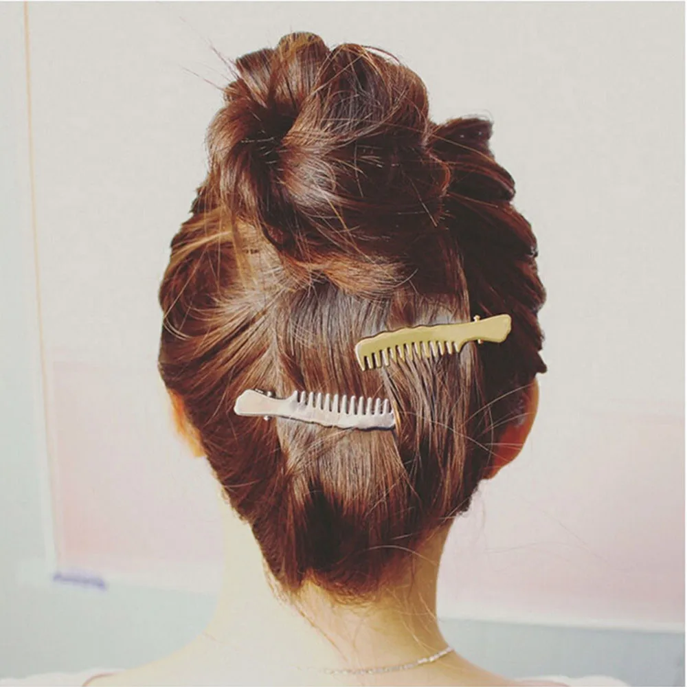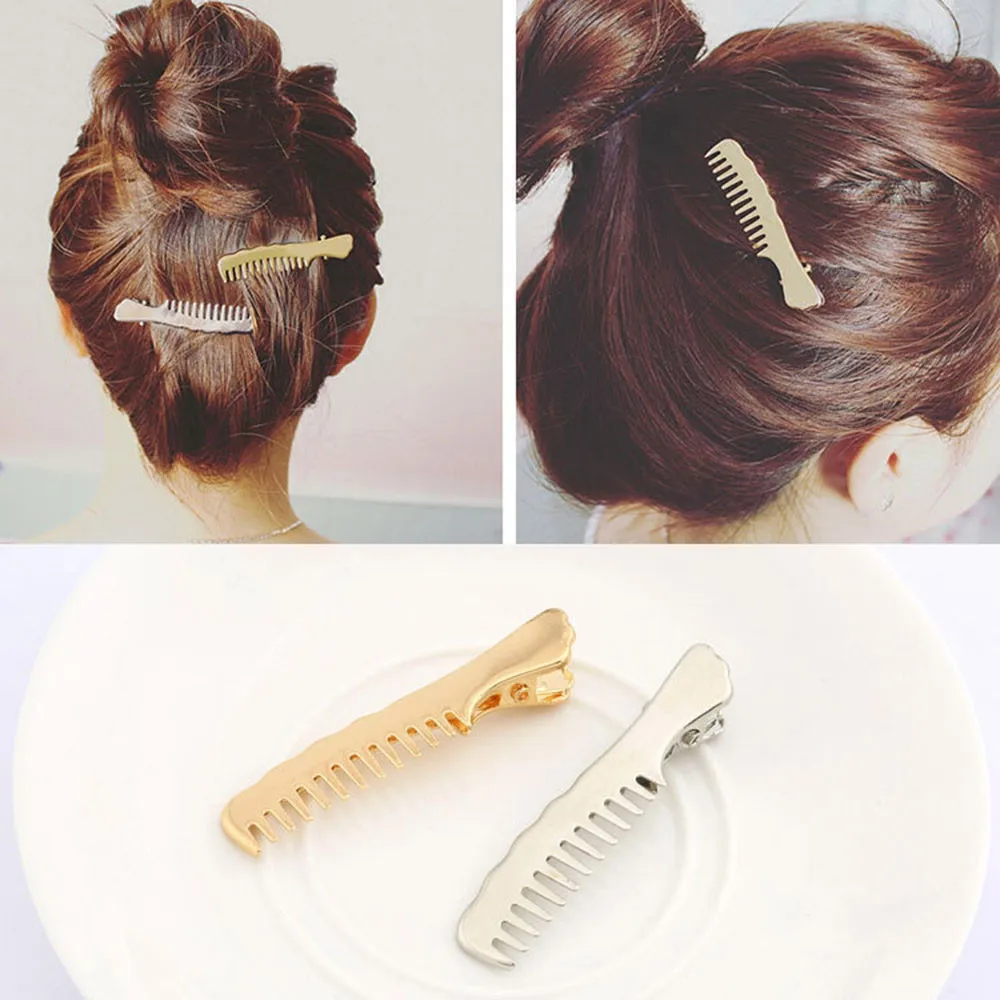 1 шт., модная заколка для волос в Корейском стиле, металлическая Нескользящая шпилька для волос серебристого и золотого цвета, аксессуары для волос