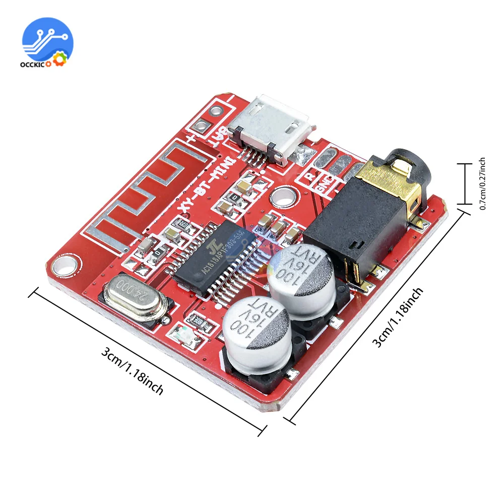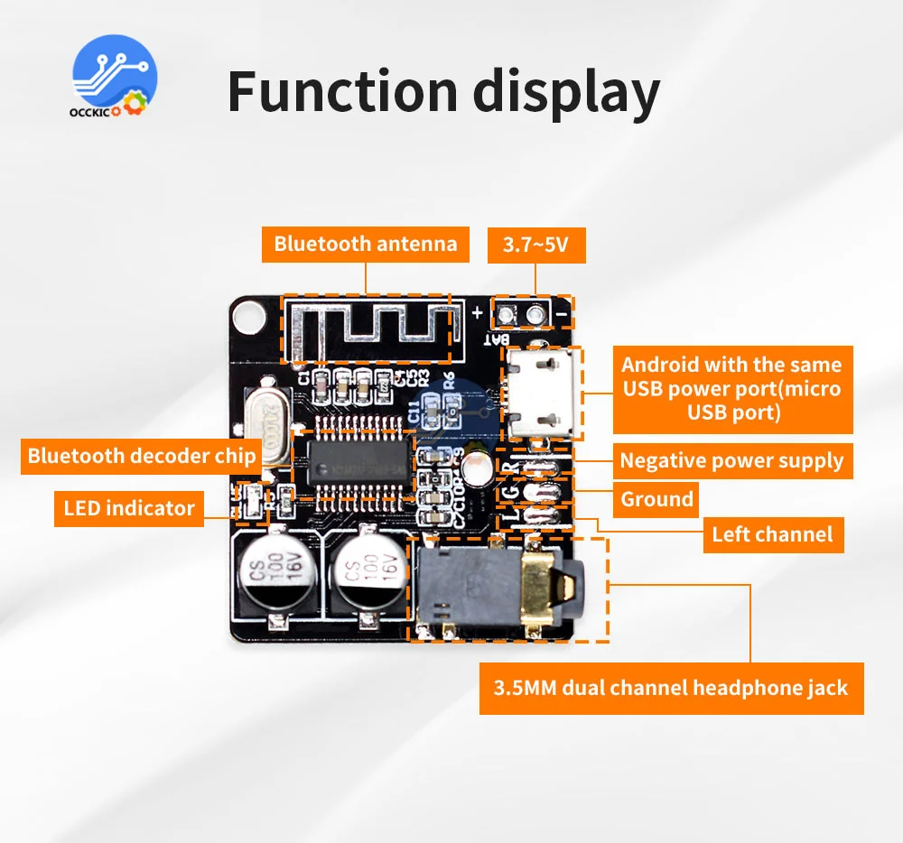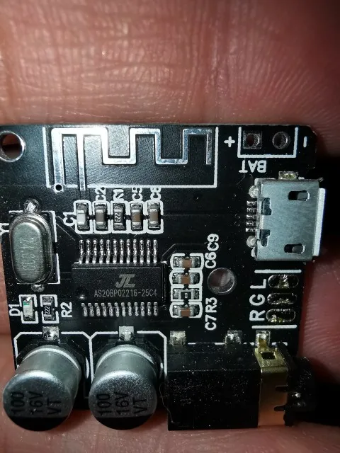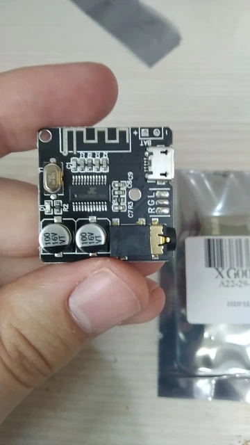 Как в рекламе. Он прибыл в Испанию через месяц, упакован в антистатический конверт рядом с партией различных продуктов, обернутых в мягкий пакет. Этот модуль bluetooth 5,0 может питаться от 1 аккумулятора 3,7 В или через порт зарядки microUsb. Этот порт не подходит для загрузки аккумулятора. Объем и подключение модуля очень хорошие. Аудиовыход может быть сделан путем сварки с R-Gnd-L кабелями или разъемом для наушников 3,5 мм AUX портом.