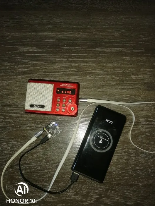 Добрый день. Получил вашу посылку, спасибо. Но проскакивают какие то помехи. Питается от батареи. Звук хороший. Подключился без каких либо проблем. Связь стабильная. Если что то обнаружу, дополню отзыв. Минут 10 слушаю. Помехи не появляются