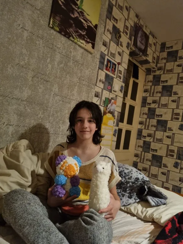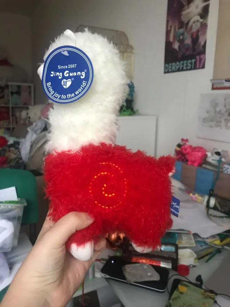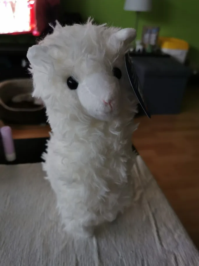игрушка прикольная небольшая пушистая без запаха, аккуратно сшита, ребенок в восторге! спасибо продавцу