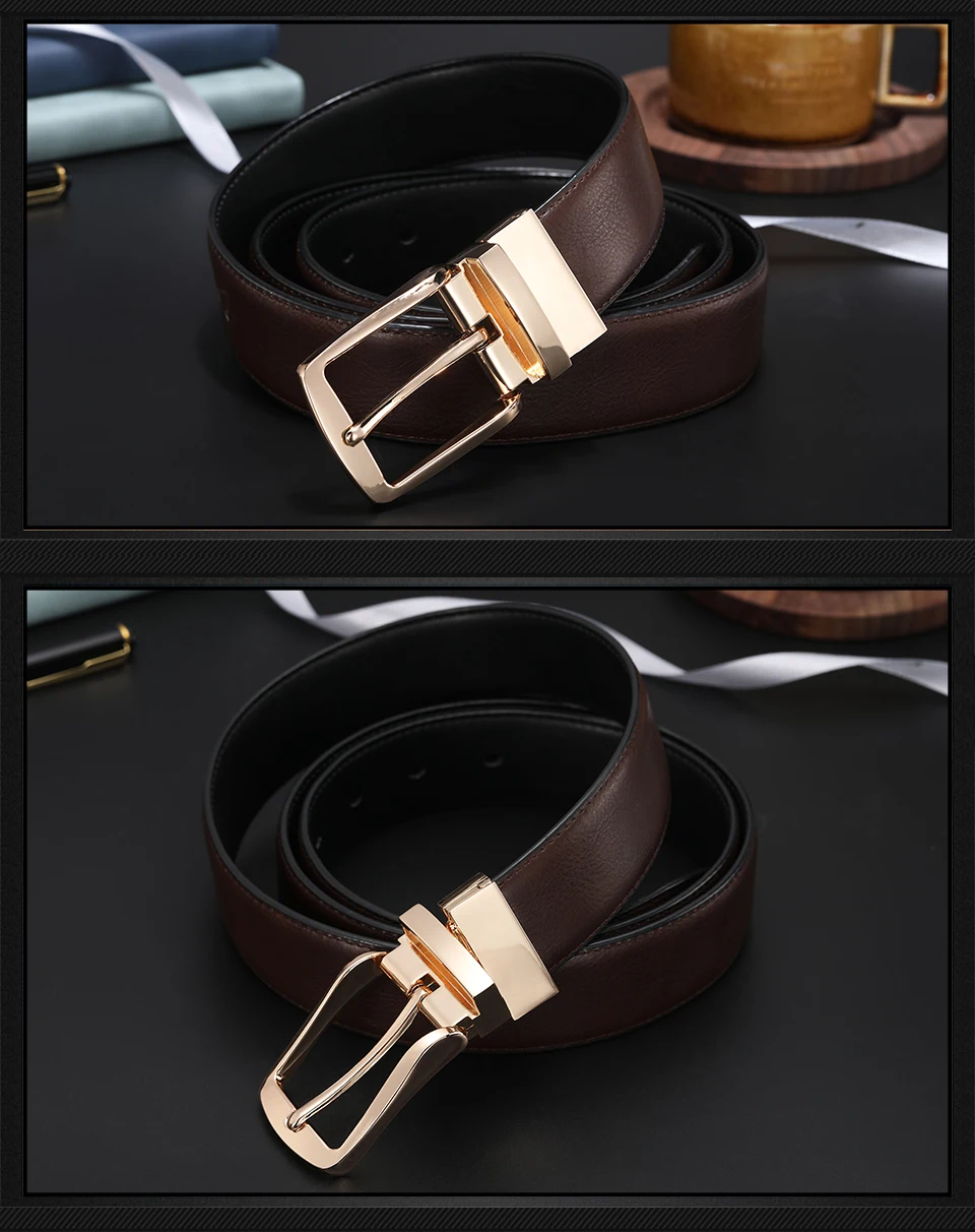 Мужское платье, двусторонний ремень, Повседневный, высокое качество, ремень из натуральной кожи, Мужской винтажный роскошный черный коричневый