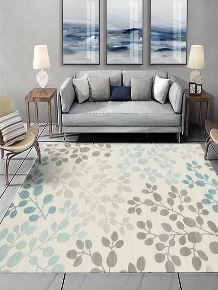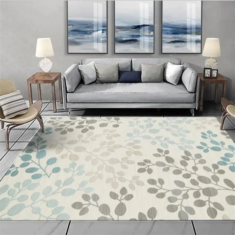 Ковры для гостиной, европейские классические коврики с рисунком синих и серых листьев, коврики для детской, гостиной, аксессуары для стола