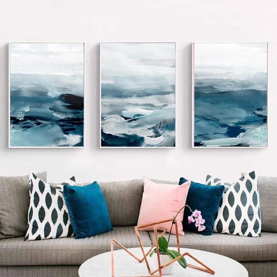Абстрактная картина маслом, пейзаж, горный синий скандинавский Картина на холсте, постеры и принты, настенные художественные картины, декор для гостиной и дома