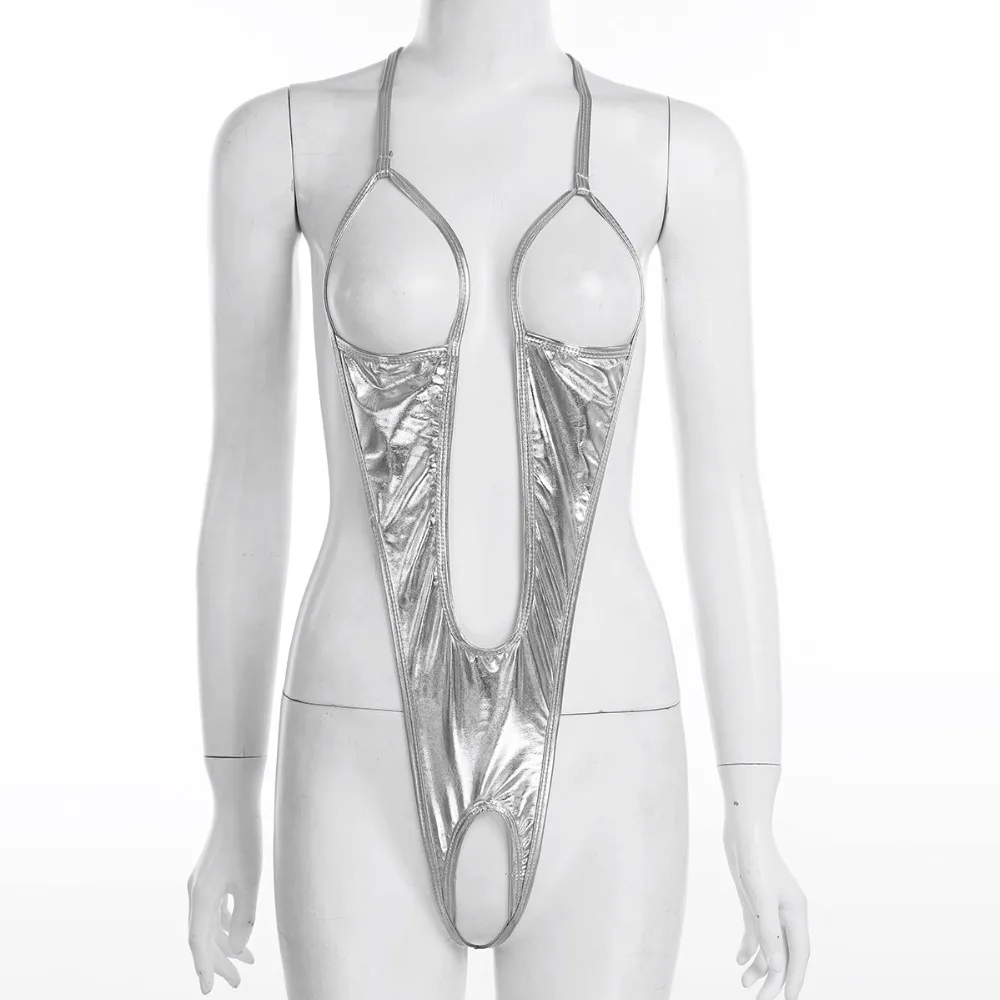 Женские купальники, цельный купальник, боди, купальный костюм из лакированной кожи, купальный костюм с открытым бюстом, боди с вырезами, одежда для сна, ночная рубашка