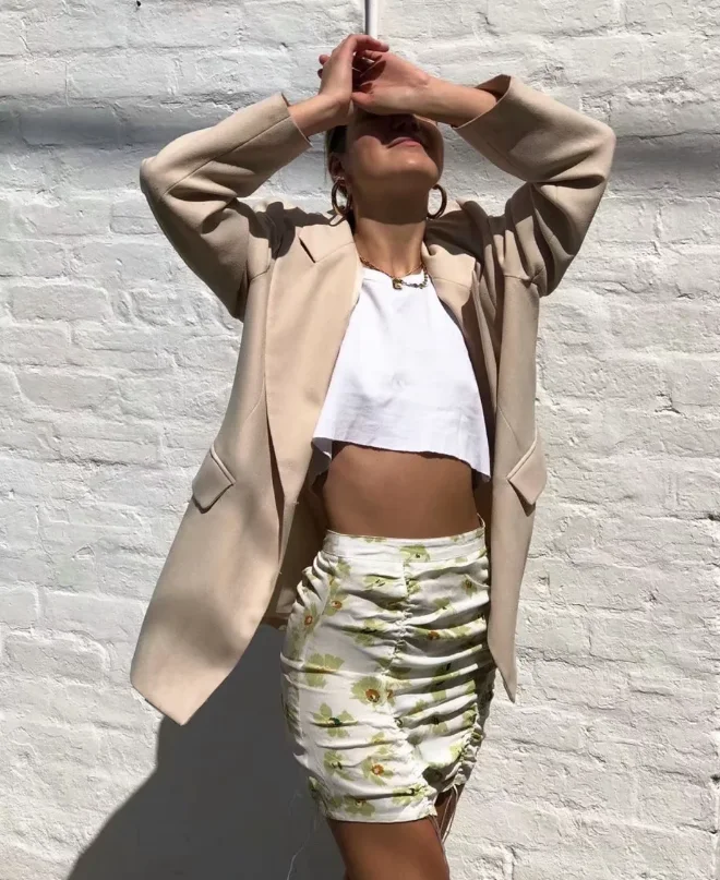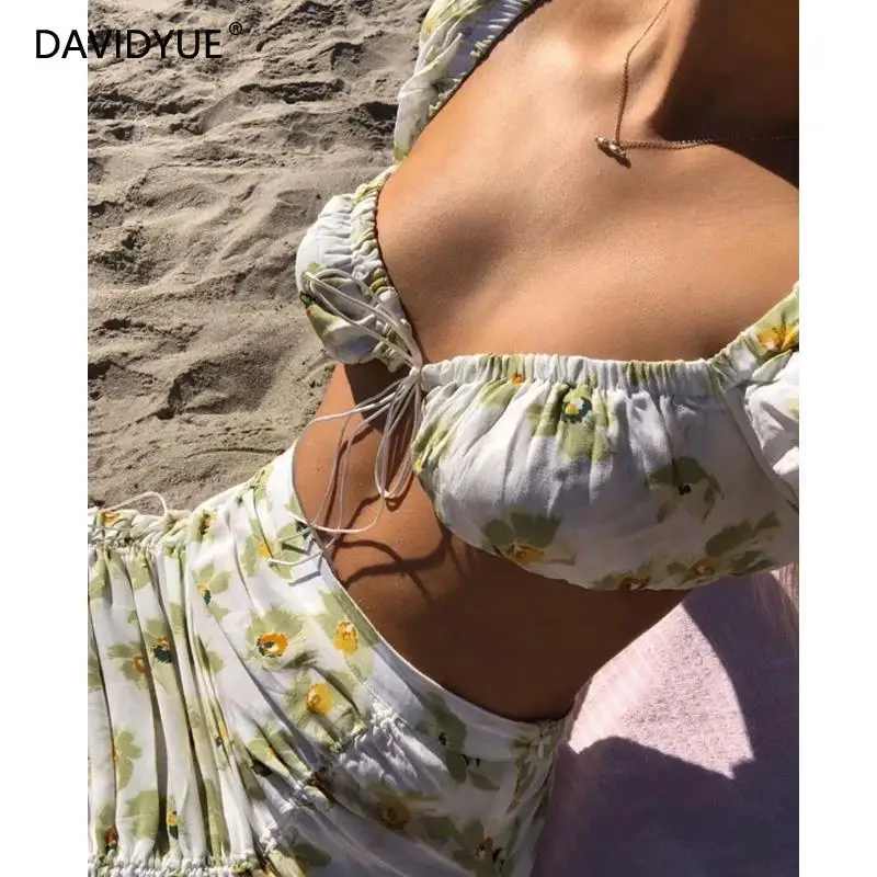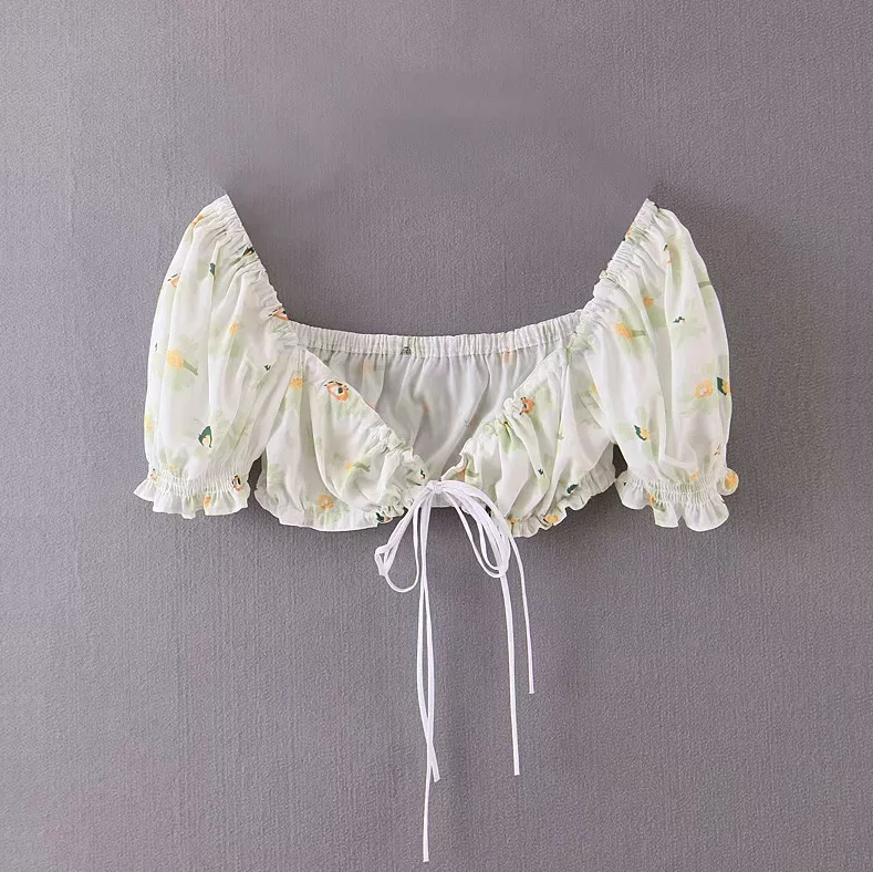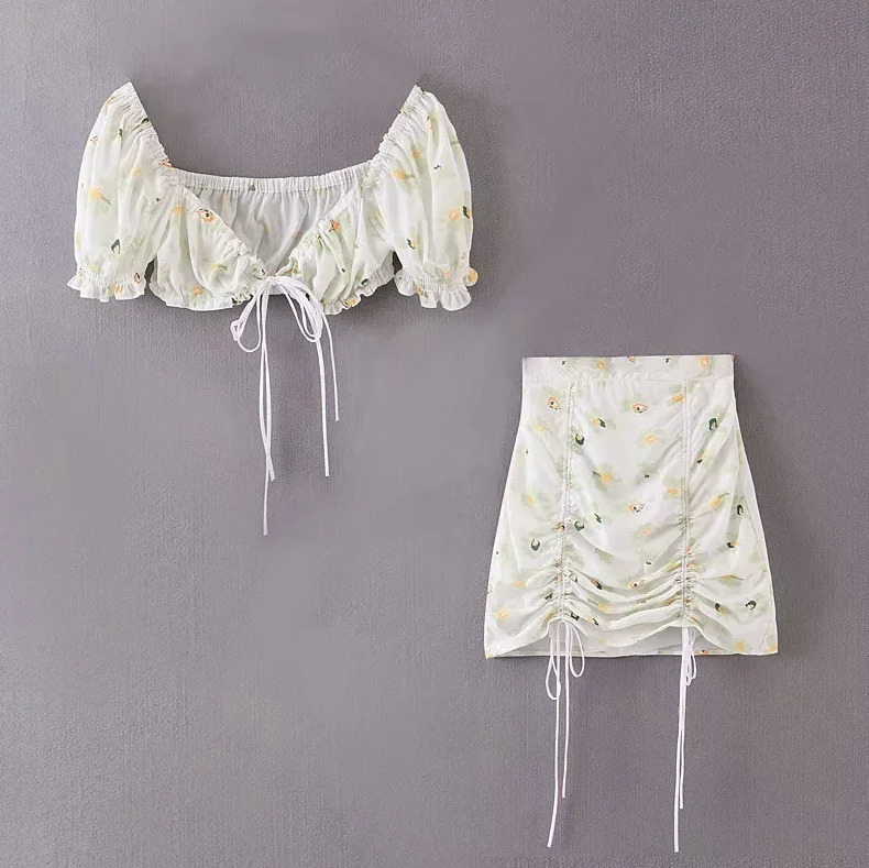 Белая женская винтажная блузка, уличная одежда, женские топы, элегантные шифоновые блузки, пикантная юбка с цветочным принтом, короткий топ с оборками, мини-юбки