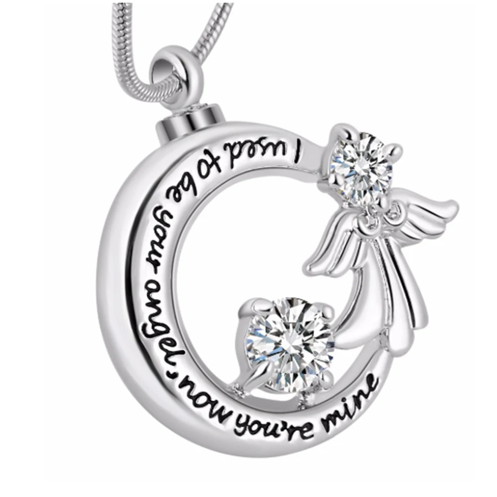 Мемористическое ожерелье для урны, я был вашим ангелом, теперь вы мой медальон, Крыло ангела, зола после кремации, сердце, ювелирные изделия