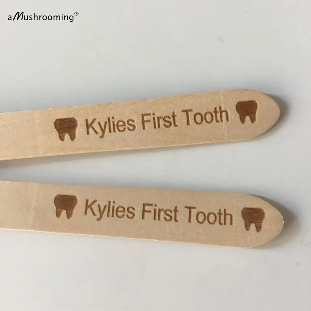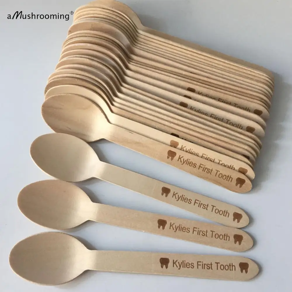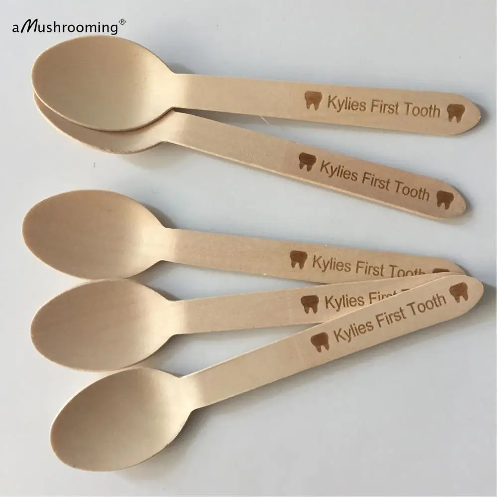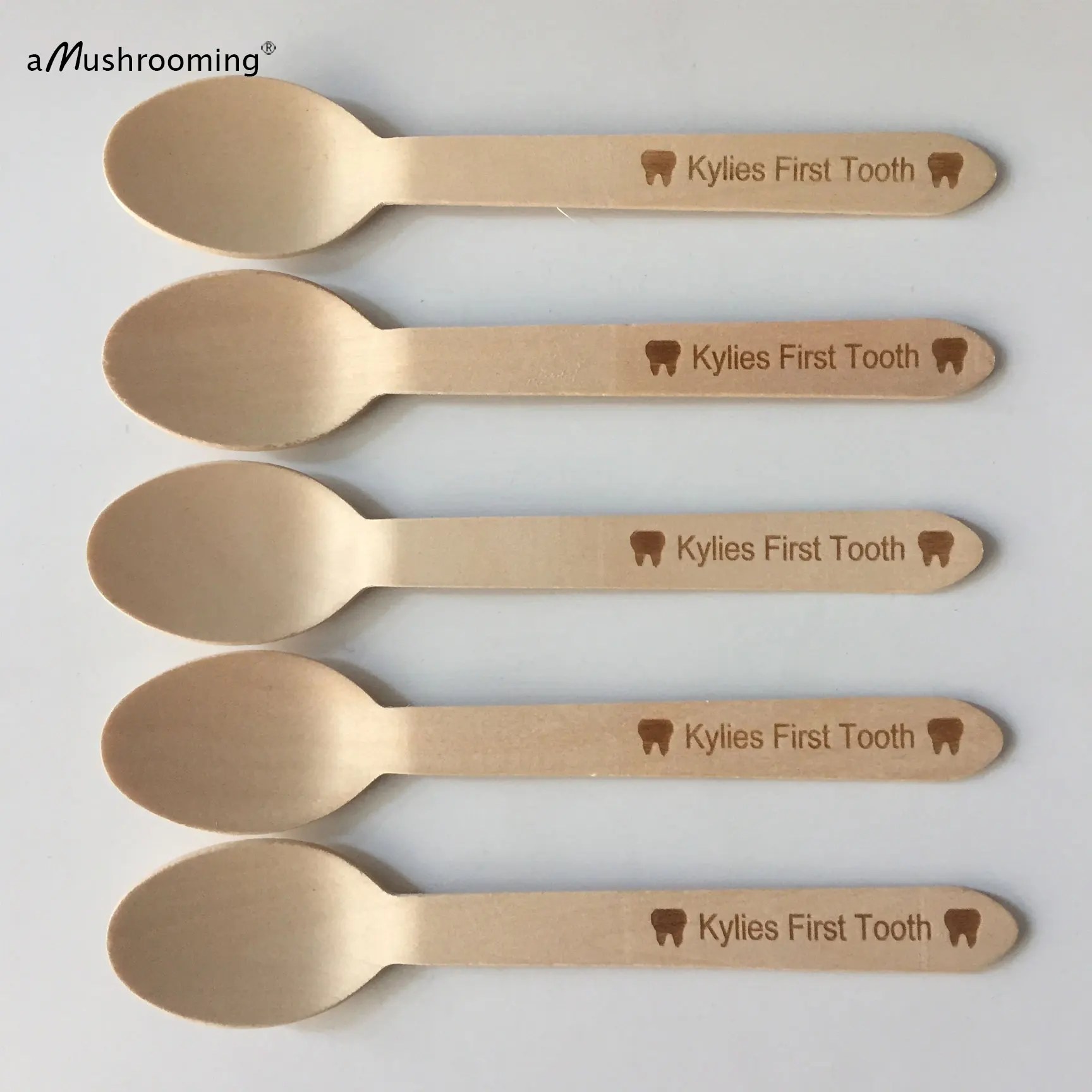 Персонализированные детские первые зубные ложки для вечеринки, для девочек и мальчиков, для первого дня рождения, мороженое, торт, десертные ложки, 6 1/2, биоразлагаемые деревянные ложки