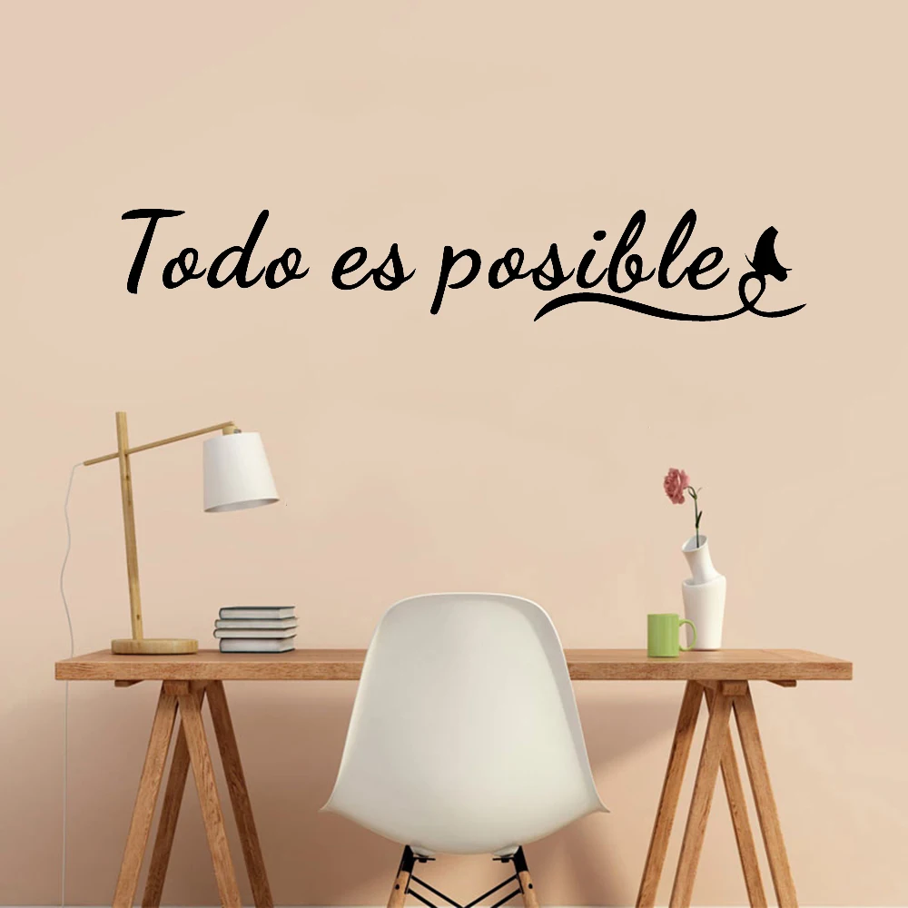 Наклейки на стену все возможно, испанские вдохновляющие цитаты для комнаты подростка, современный офисный домашний Декор виниловые наклейки для окон Y524