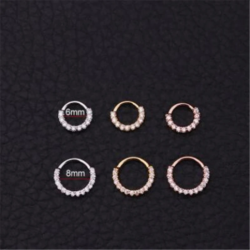 Модный Циркон, 1 шт., 6, 8, 10 мм, золотой, Радужный серебряный цвет, нержавеющая сталь, Открытое кольцо для носа, серьга, пирсинг, украшения для тела