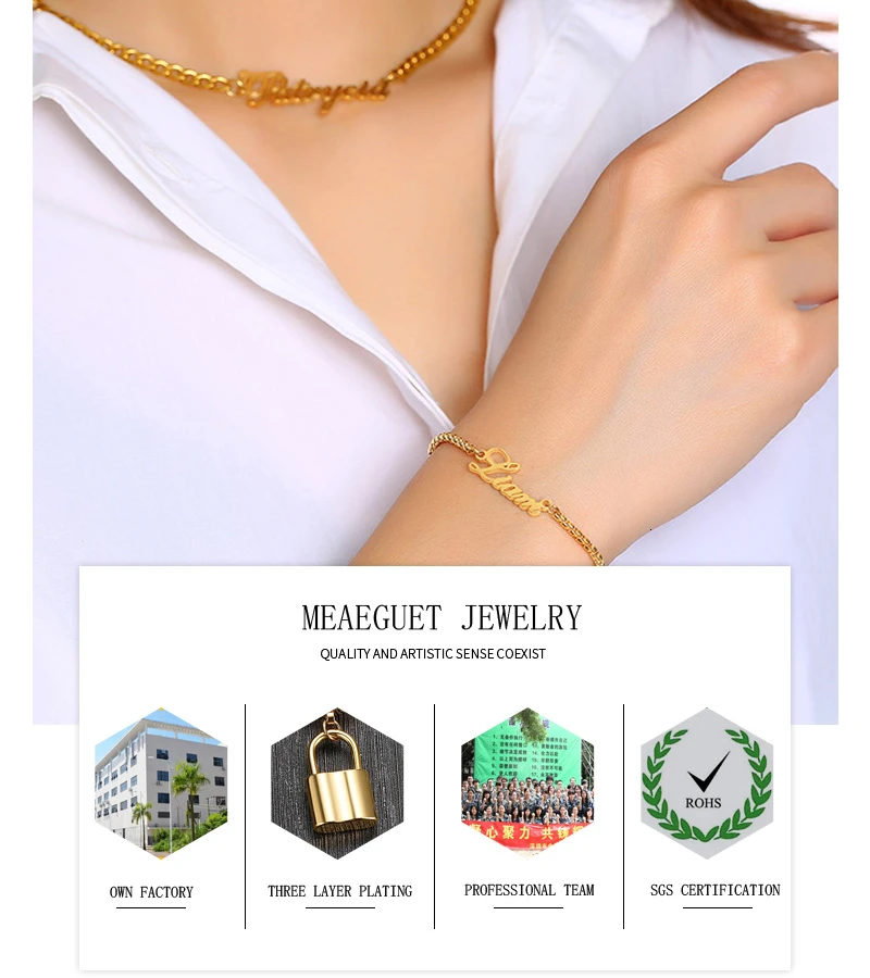 Браслет с именем на заказ для женщин и девушек, регулируемый браслет из нержавеющей стали с цепочками в коробке с арабскими буквами