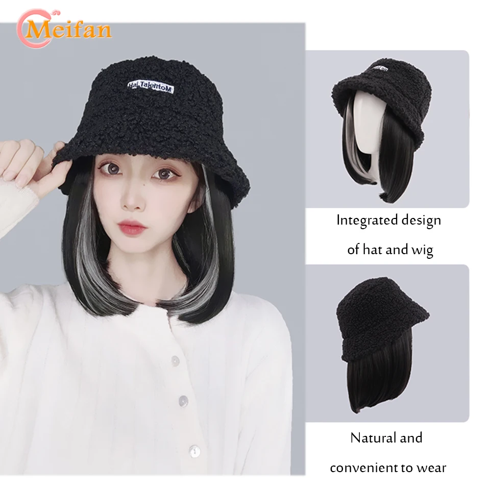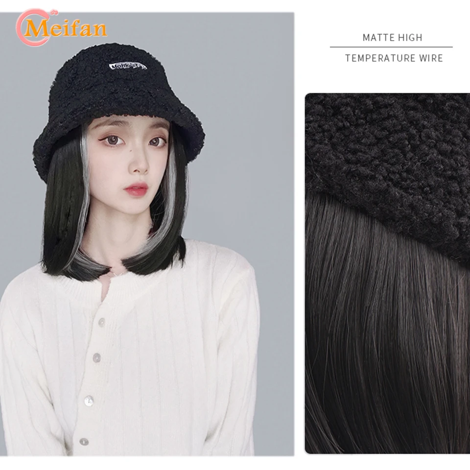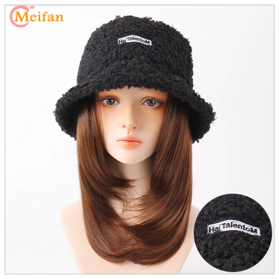 Панама MEIFAN с широкими полями для женщин, синтетический парик, черная коричневая, длинные прямые волосы для наращивания, теплая зимняя шапка