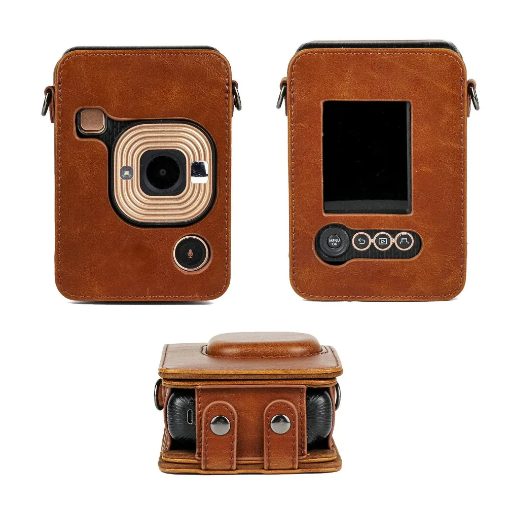 Чехол-книжка для камеры Fujifilm Instax Mini Liplay Hybird, из искусственной кожи, черныйкоричневыйбелый