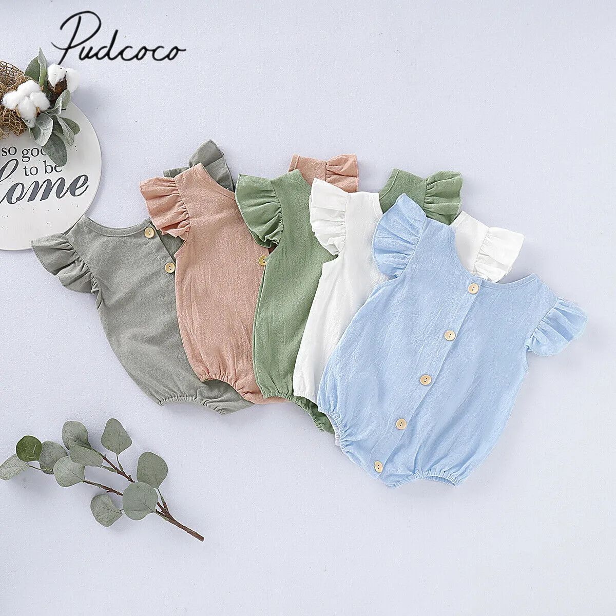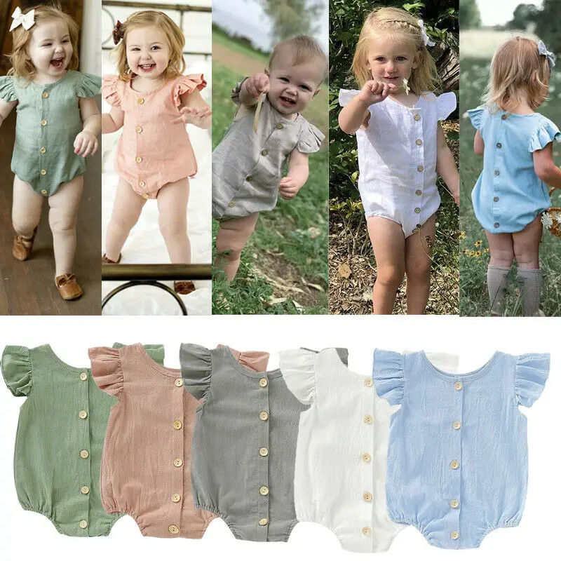 Комбинезон детский, для девочек и мальчиков, короткий рукав, с оборками, однотонный