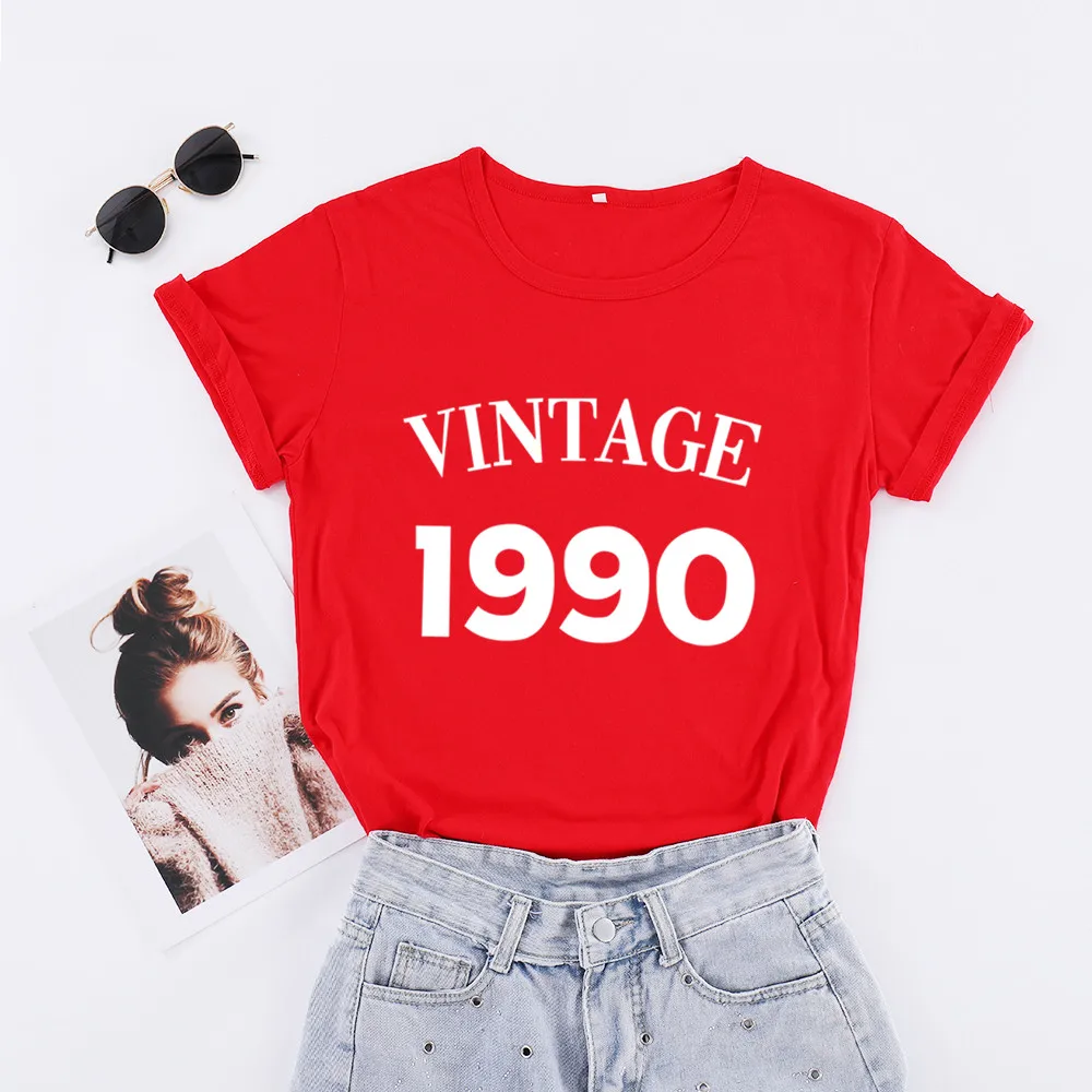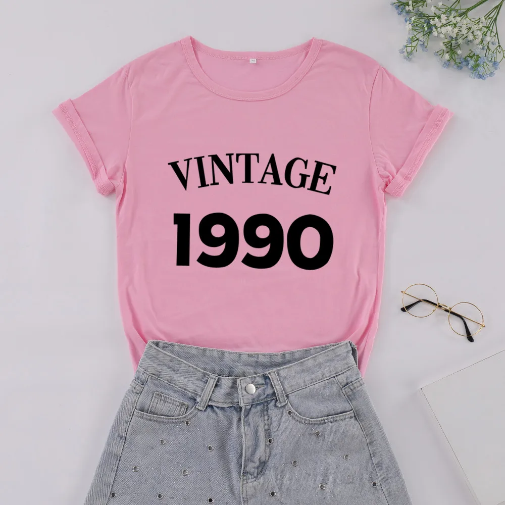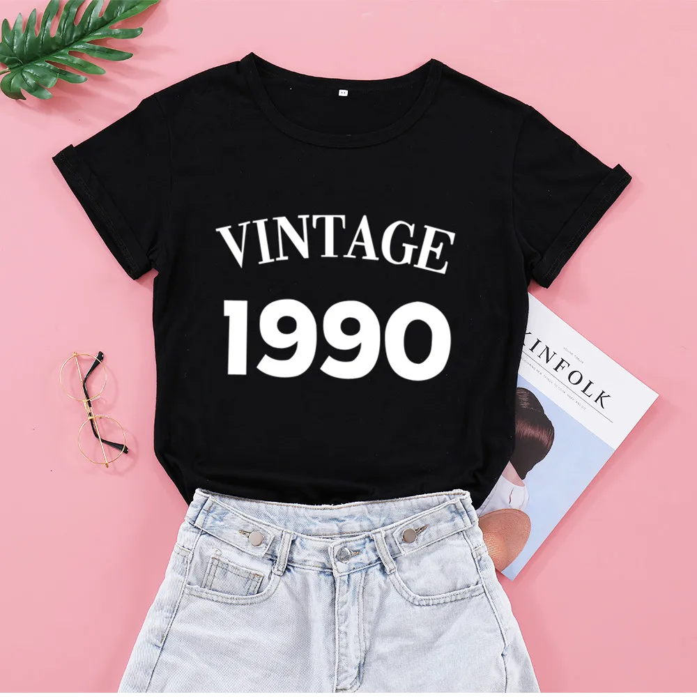 Женская Винтажная футболка с круглым вырезом, хлопковая вечерние лка с коротким рукавом и круглым вырезом, модель 1990 большого размера в уличном стиле на день рождения
