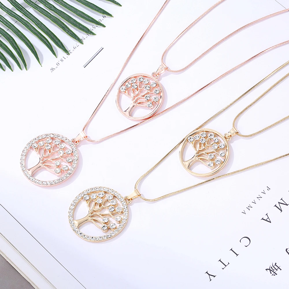 Модное Двухслойное ожерелье с подвеской в виде дерева жизни для женщин Подарок для мамы и женщины Длина цепочки: 47 см и 52 см Цвет: золото/серебро/розовое золото Вес: 20,6 г