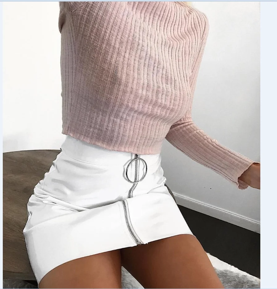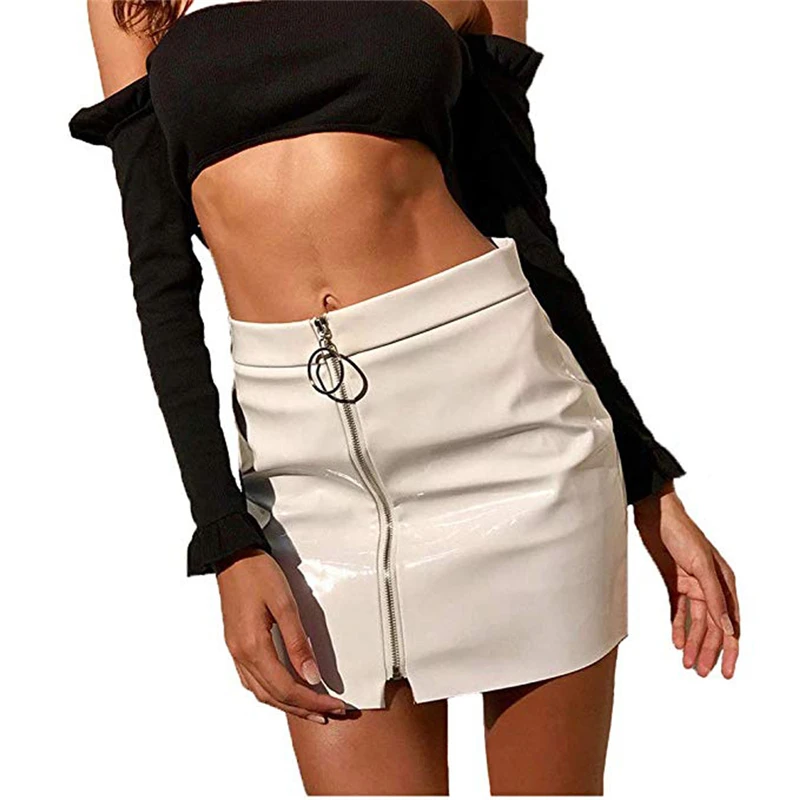 Юбка-карандаш Женская юбки женские молнии с завышенной талией, однотонная эластичная облегающая мини-юбка из искусственной кожи, 2021