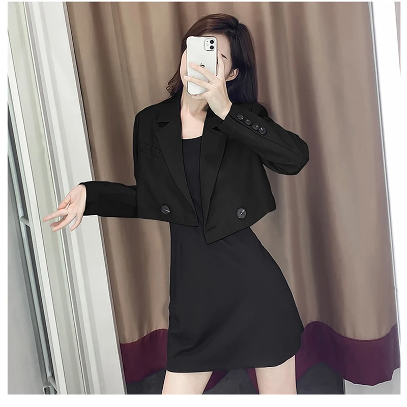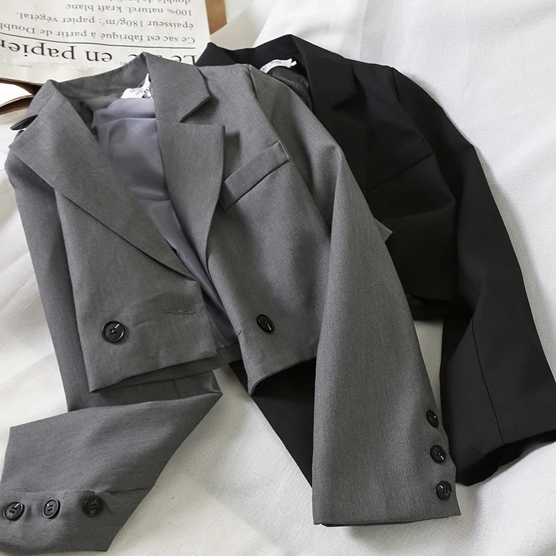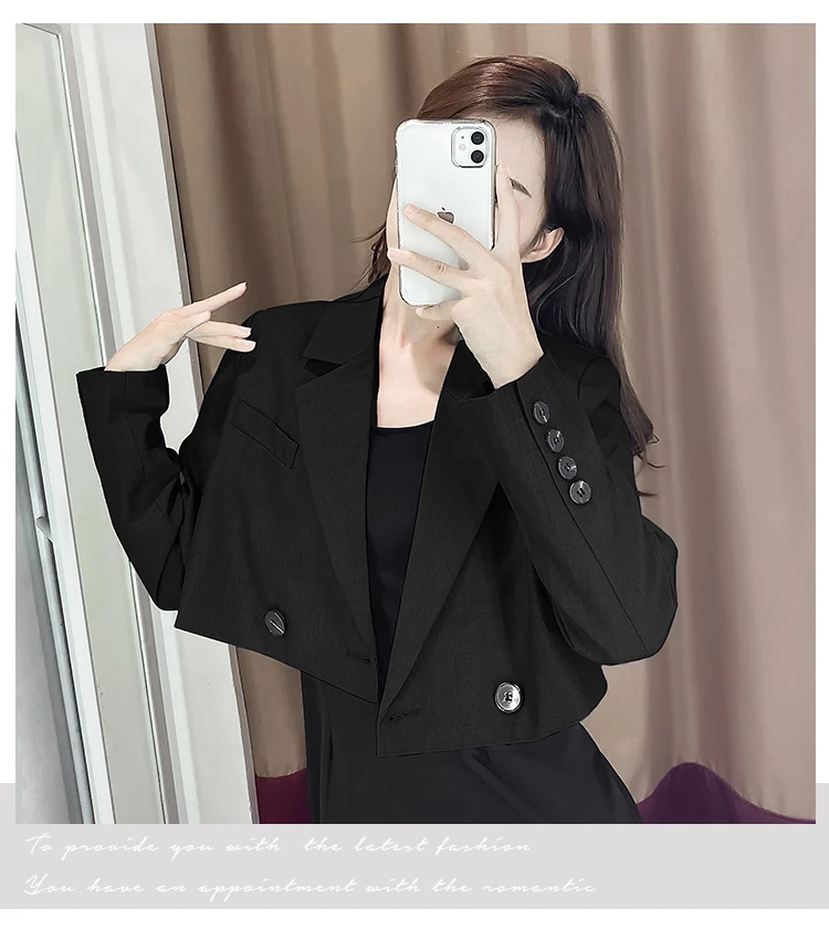 Куртка женская черная на пуговицах, с длинным рукавом, осень укороченный топ Харадзюку